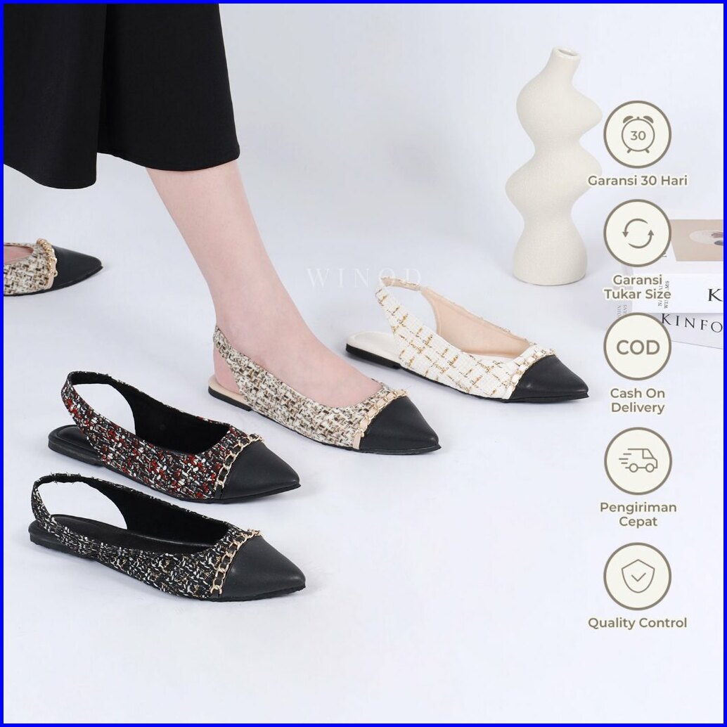 Winod Louis Flatshoes Sepatu Kerja Model Tweed Flats Wanita Daily