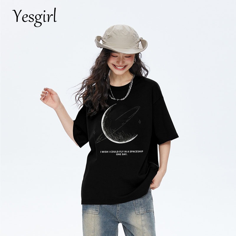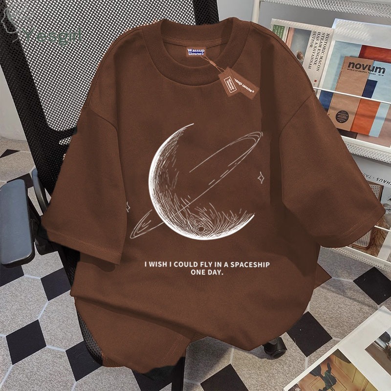 [Mall] Yesgirl Korean style Around the Universe print kaos kasual longgar| Kaos Oversize Wanita | Fashion korean style baju kao