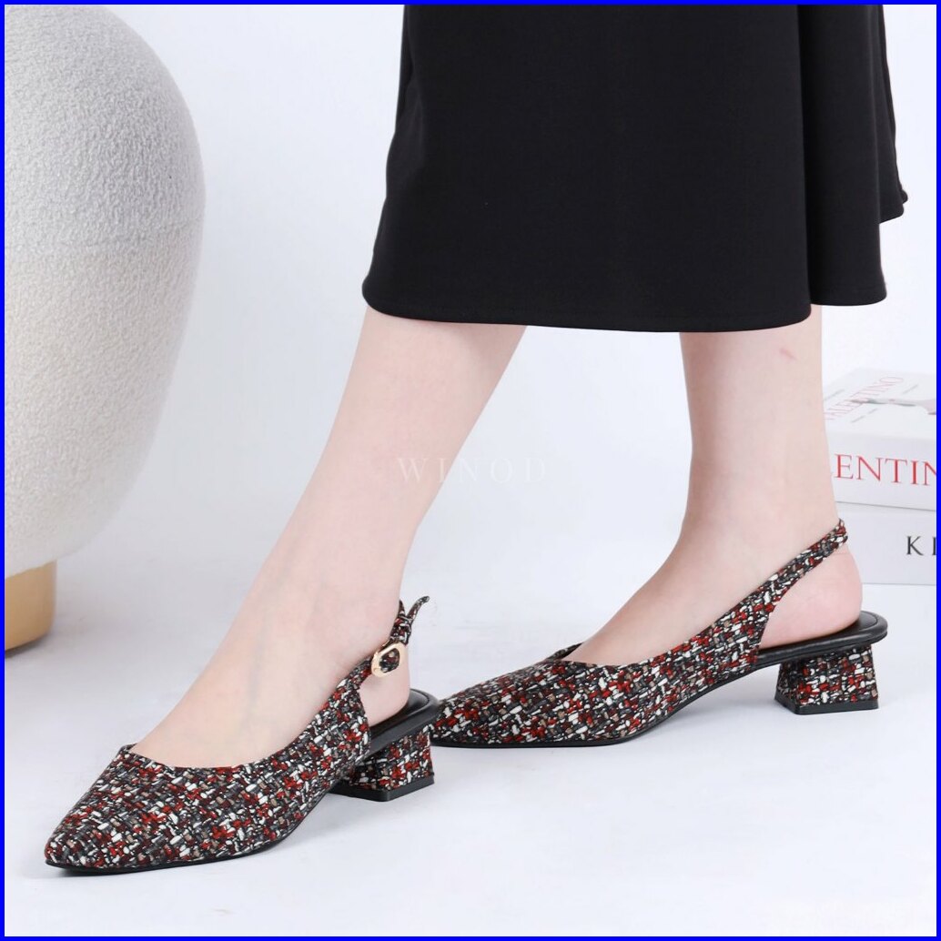 Winod Given Heels Wanita Hak 3cm Model Tweed Pantofel Slingback Daily