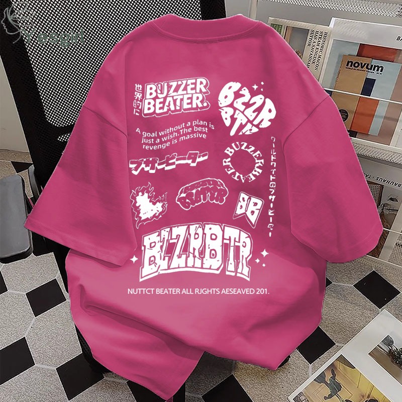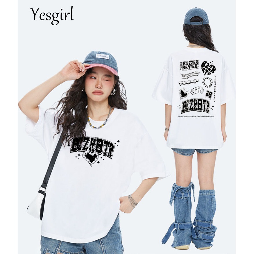 [Mall] Yesgirl American style brand English letters graffiti print kaos kasual longgar| Kaos Oversize Wanita | Fashion korean s