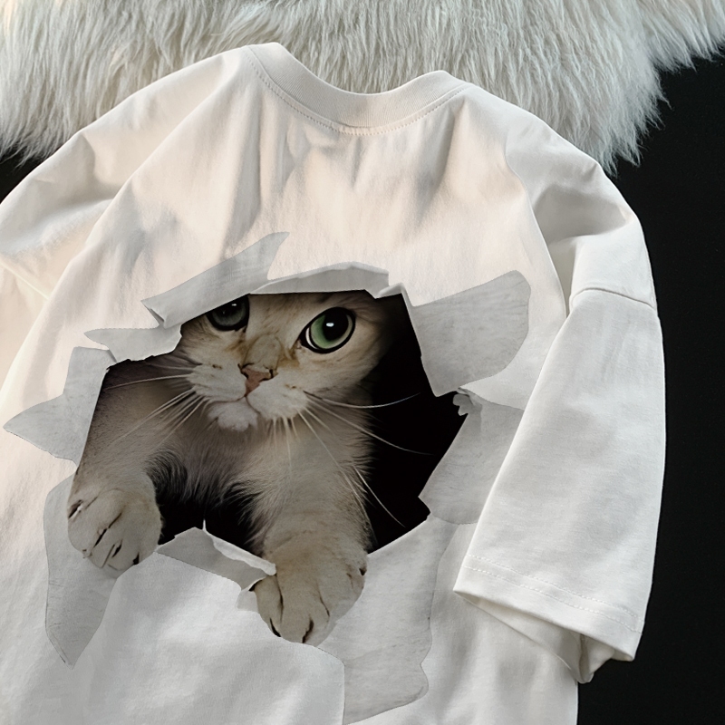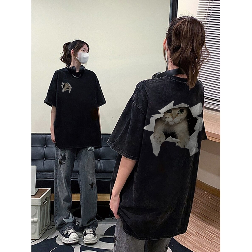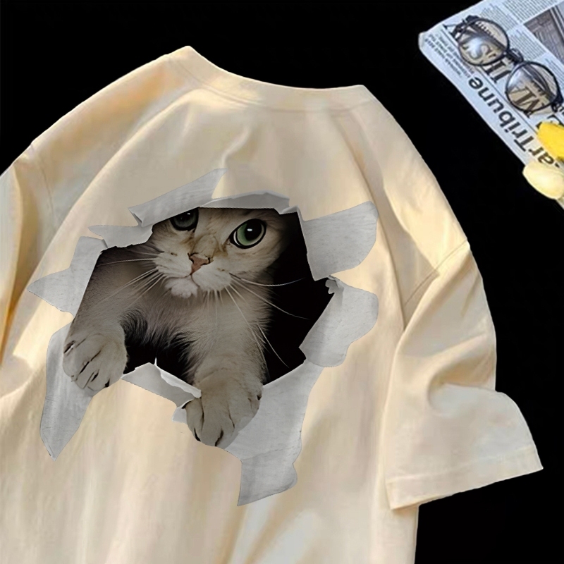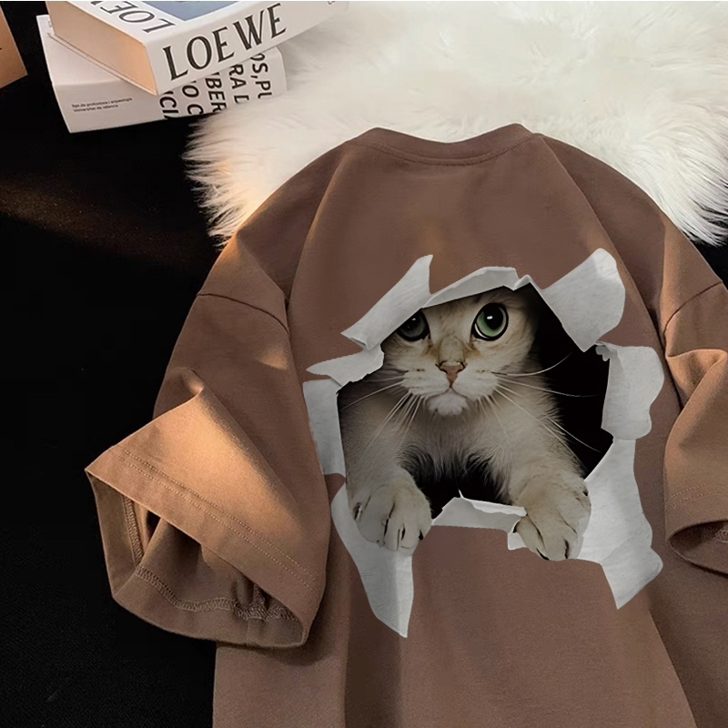 [Mall] Yesgirl cetakan kucing lucu Cotton Atasan Kaos /kaos lucu wanita T-shirt Lengan Pendek Baju Kaos Oversize Wanita Baju |k