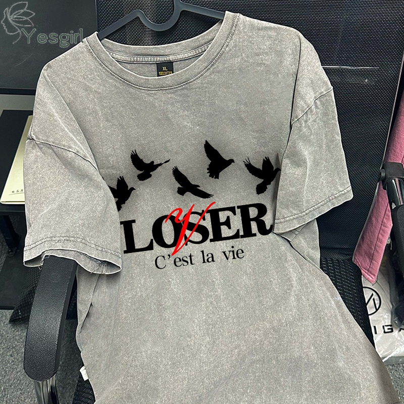 [Mall] Yesgirl Korea style “LOSER C'est la vie” print kaos kasual longgar| Kaos Oversize Wanita | Fashion korean style baju kao