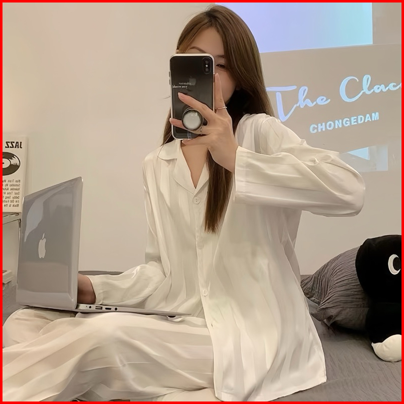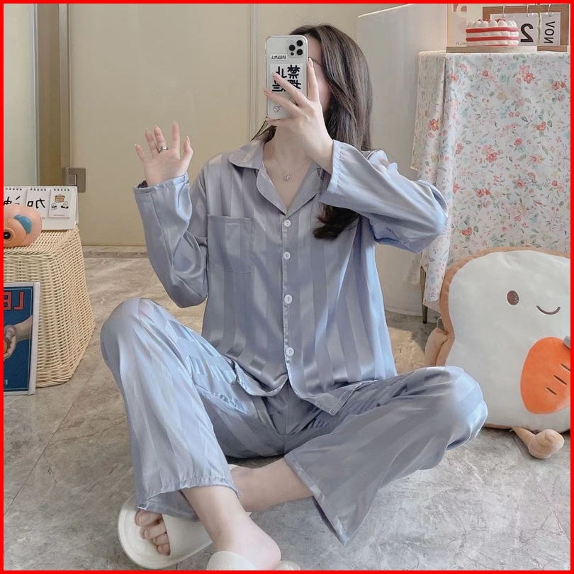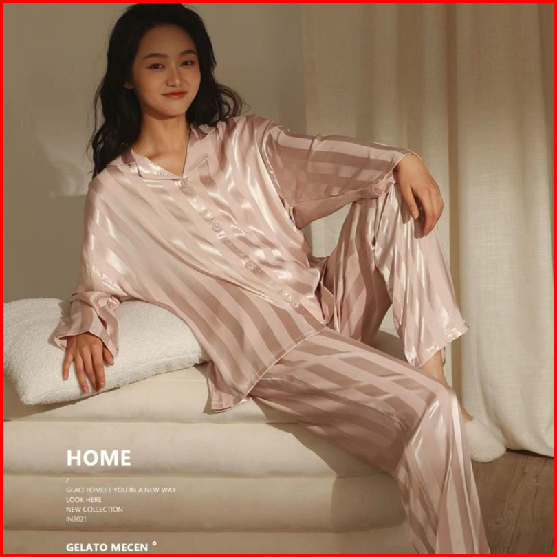 Luxury Piyama Exclusive Baju Tidur Mewah Kelas Atas Import Quality Piyama Satin Lengan Panjang Celana Panjang Kerah Moti