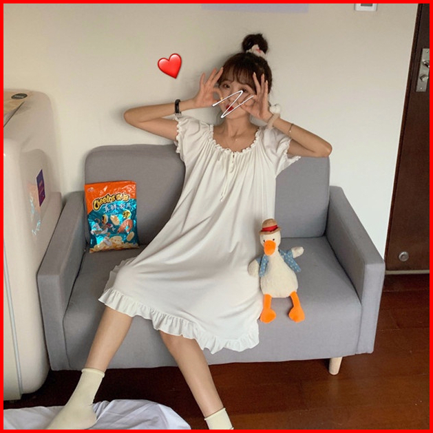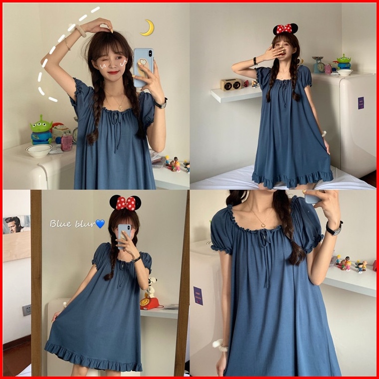 Uninice Pengiriman Rahasia Dress Lucu Lengan Pendek Model Longgar Warna Solid Baju Tidur