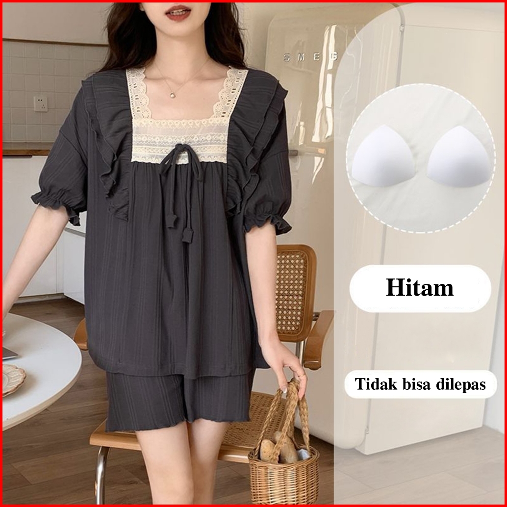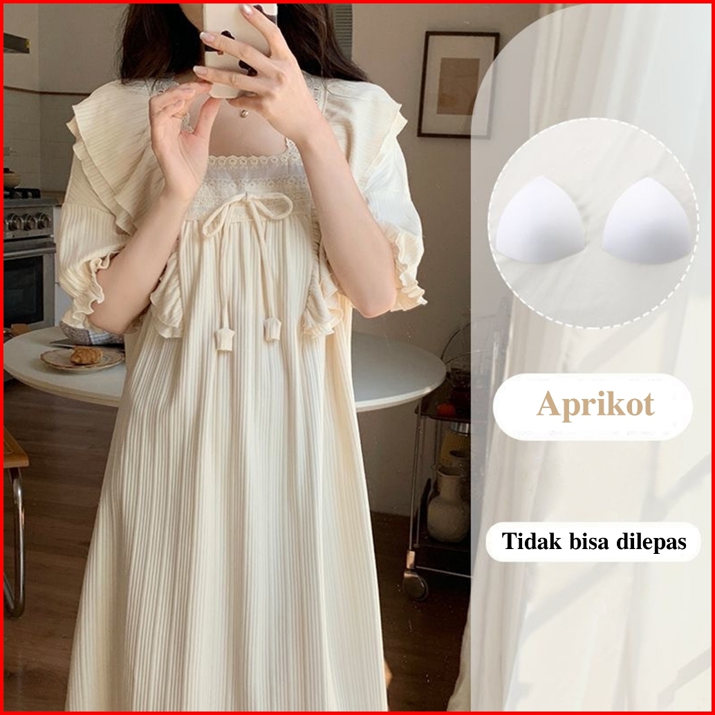 Uninice Baju Tidur Lengan Pendek Longgar Panjang Sedang Piyama Dress Berenda Manis