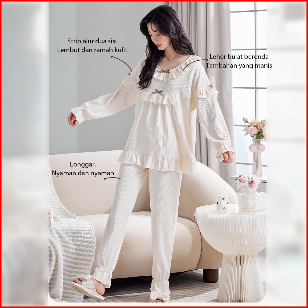 Uninice Pengiriman Rahasia Piyama Panjang Piyama Pita Lengan Panjang Ala Putri Manis