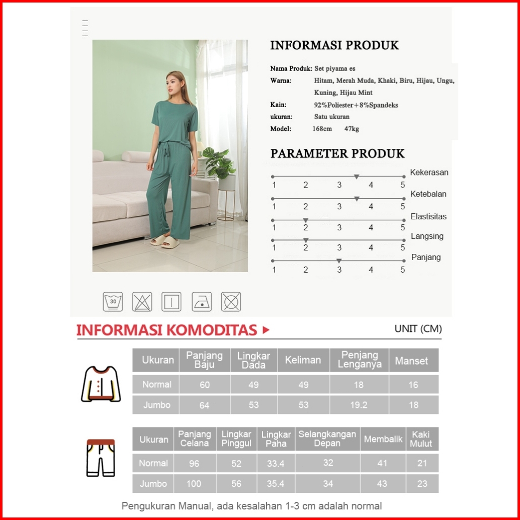 Uninice Set Piyama Wanita Warna Polos Ukuran Besar Baju Rumah Nyaman Dan Bernapas