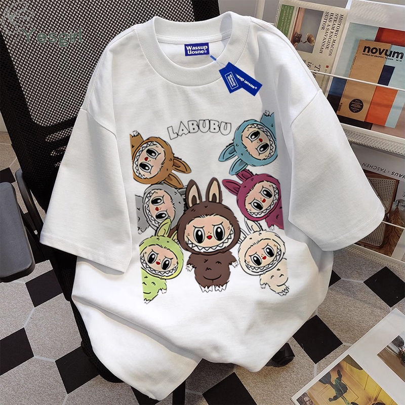 [Mall] Yesgirl Korean style Pop Mart Labubu print kaos kasual longgar| Kaos Oversize Wanita | Fashion korean style baju kaos ov