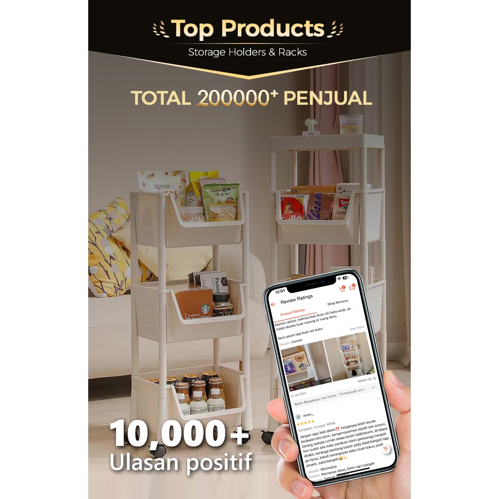 AONEZ Susun Serbaguna Tempat Rak Buku Anak Lemari Buku Plastik Rak Portable Roda Rak Mainan Rak Roda Toy Storage Rak Susun Tempat
