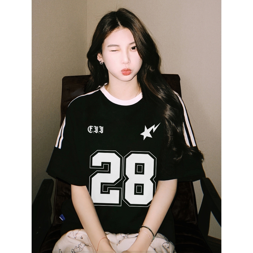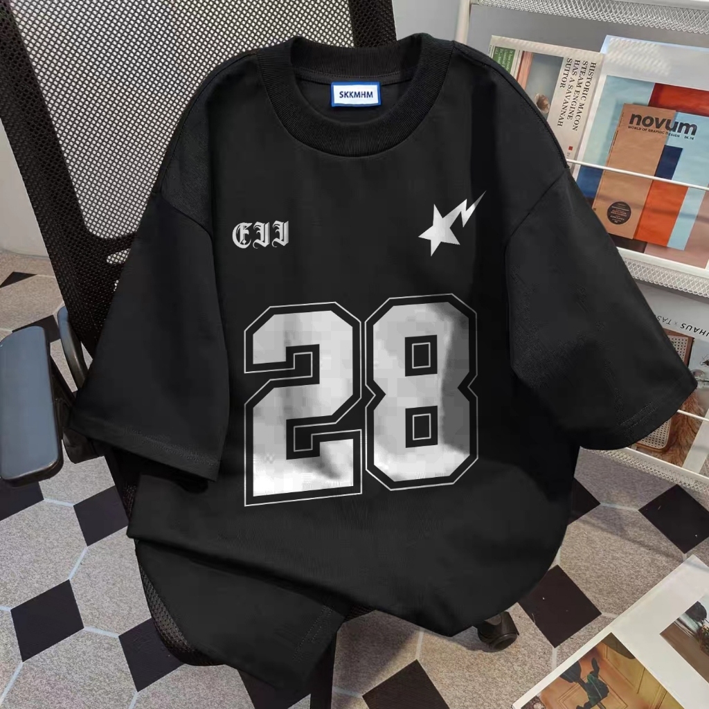 [Mall] Yesgirl Baju Wanita Putih Black Kaos Premium Lengan Pendek Oversize Kaos Motif Angka 28 Atasan Wanita Kekinian Korean St