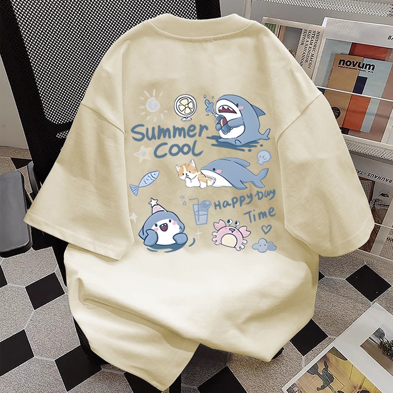 [Mall] Yesgirl Korean cartoon summer cool little shark print kaos kasual longgar| Kaos Oversize Wanita | Fashion korean style b