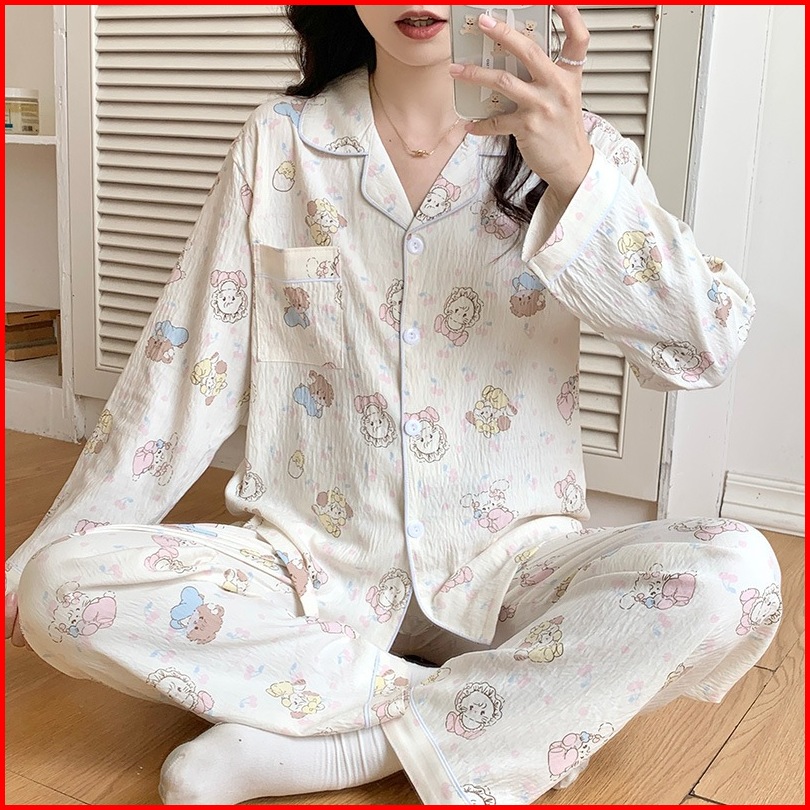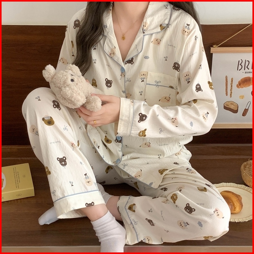 Lnr Shop Piyama Baju Tidur Lengan Celana Panjang Import Full Kancing Hidup Dengan Saku Kerah Leher Bentuk V Motif Vintag