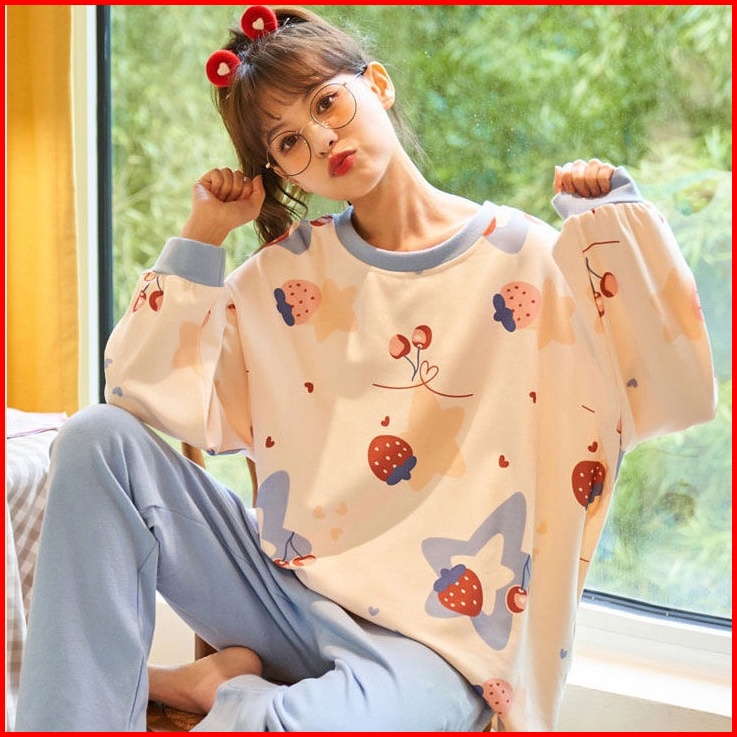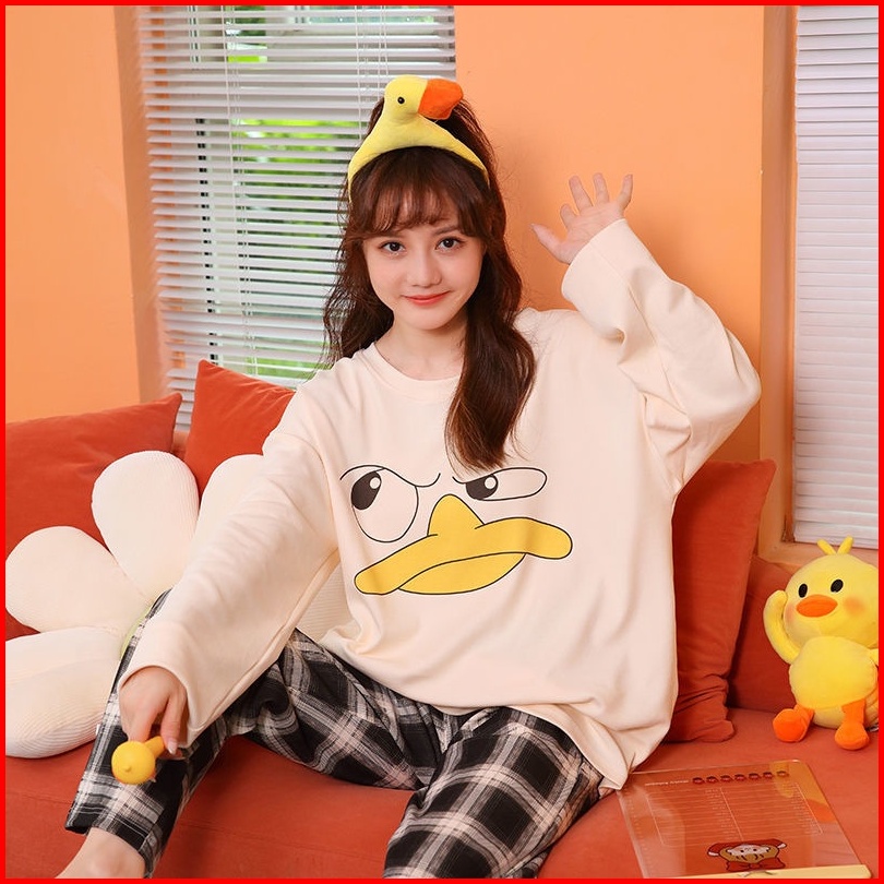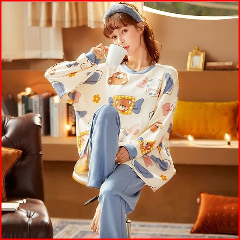 Okey Belibt1065 Setelan Set Piyama Lengan Panjang Baju Tidur Wanita Dewasa Motif Kartun Pajamas Dewasa