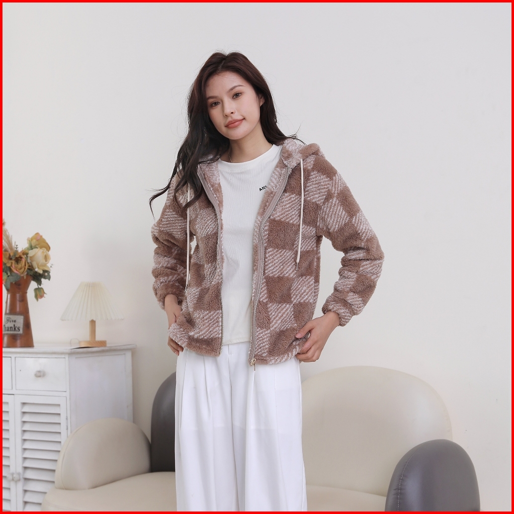 Uninice Hoodie Zipper Bulu Tebal Dan Hangat Jaket Sherpa Hoodie Musim Dingin Ukuran Jumbo