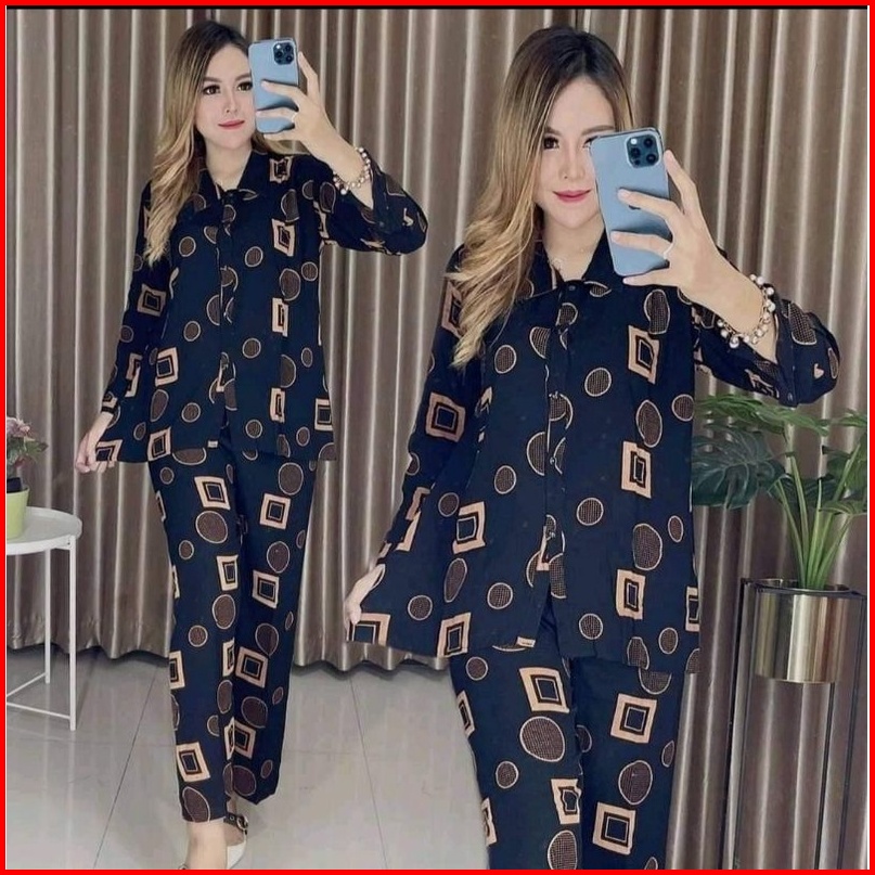 Setelan Rayon Kemeja One Set Cp Wanita Setelan Cp Motif Ll Setelan Naira