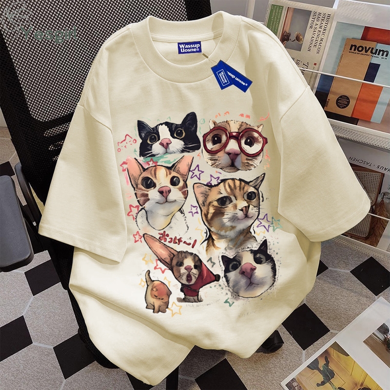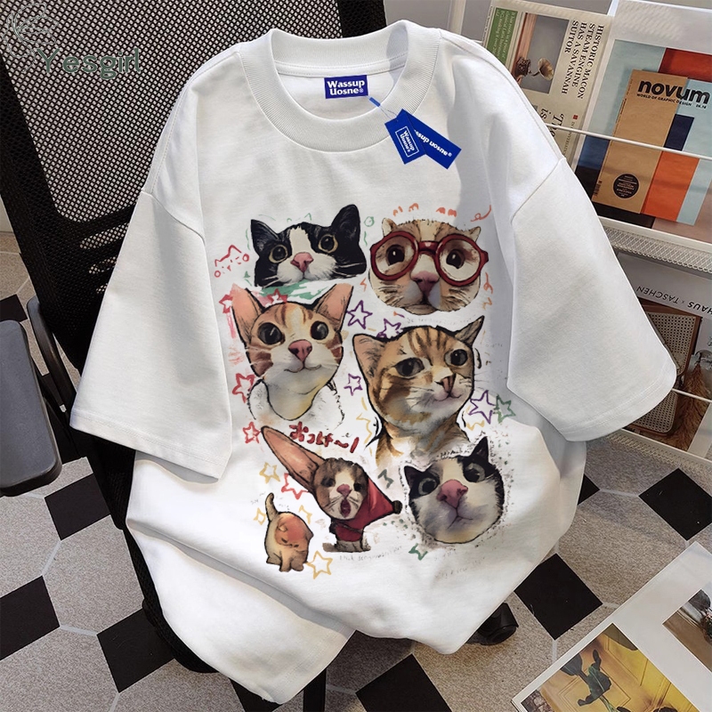 [Mall] Yesgirl Korea style “kucing lucu” print kaos kasual longgar| Kaos Oversize Wanita | Fashion korean style baju kaos overs