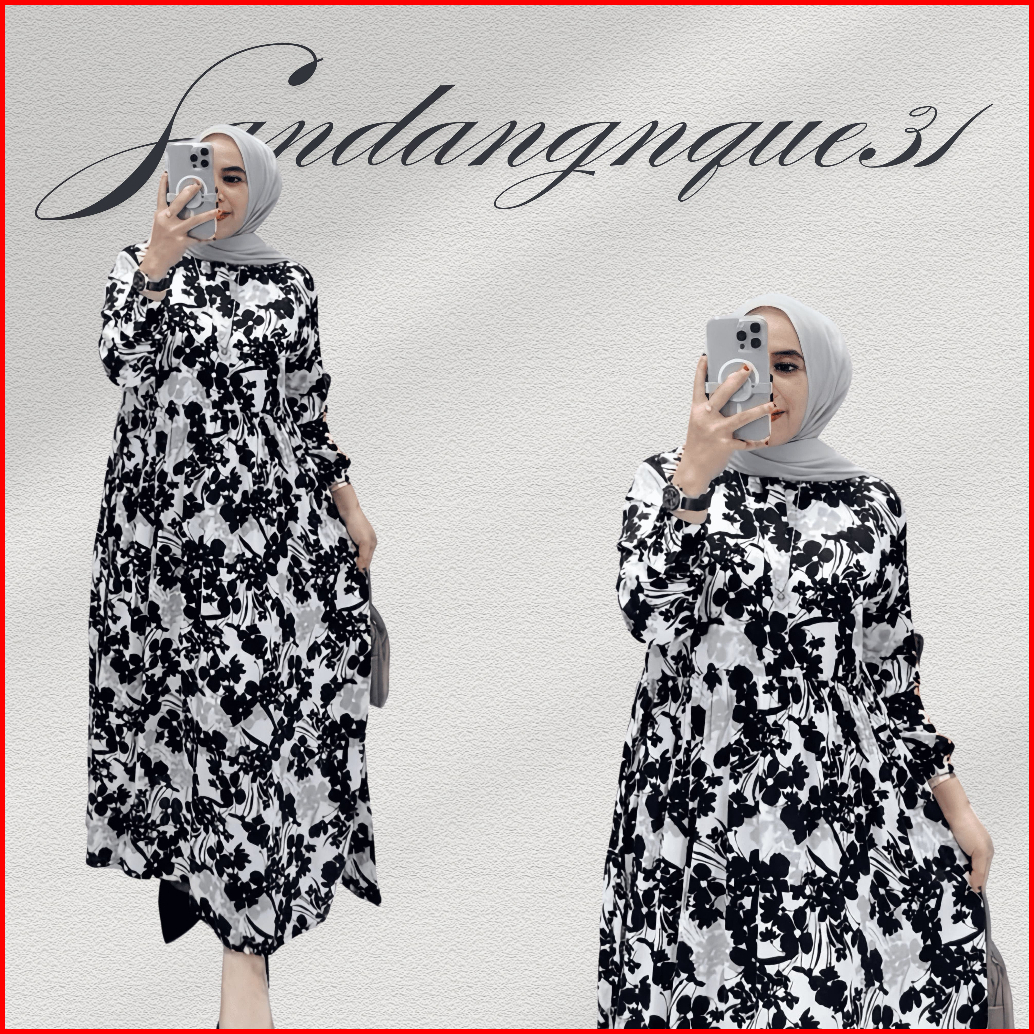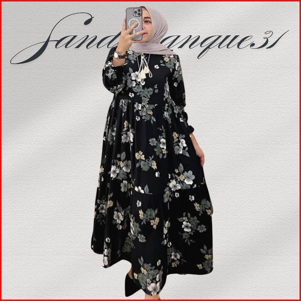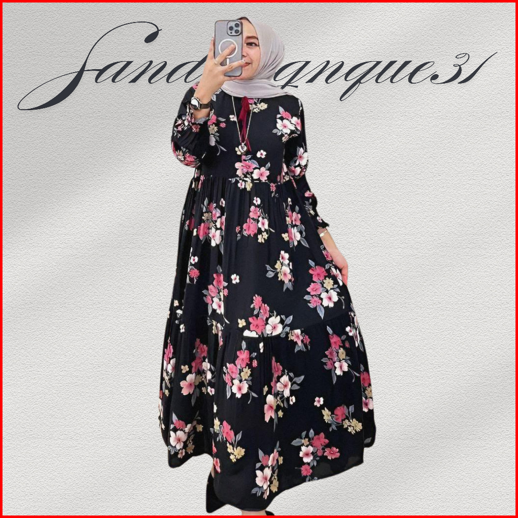 Gamis Rose Midi Dres Rayon Terbaru 2025 Dress Wanita Motif Bunga Sakura Rayon Premium Busui