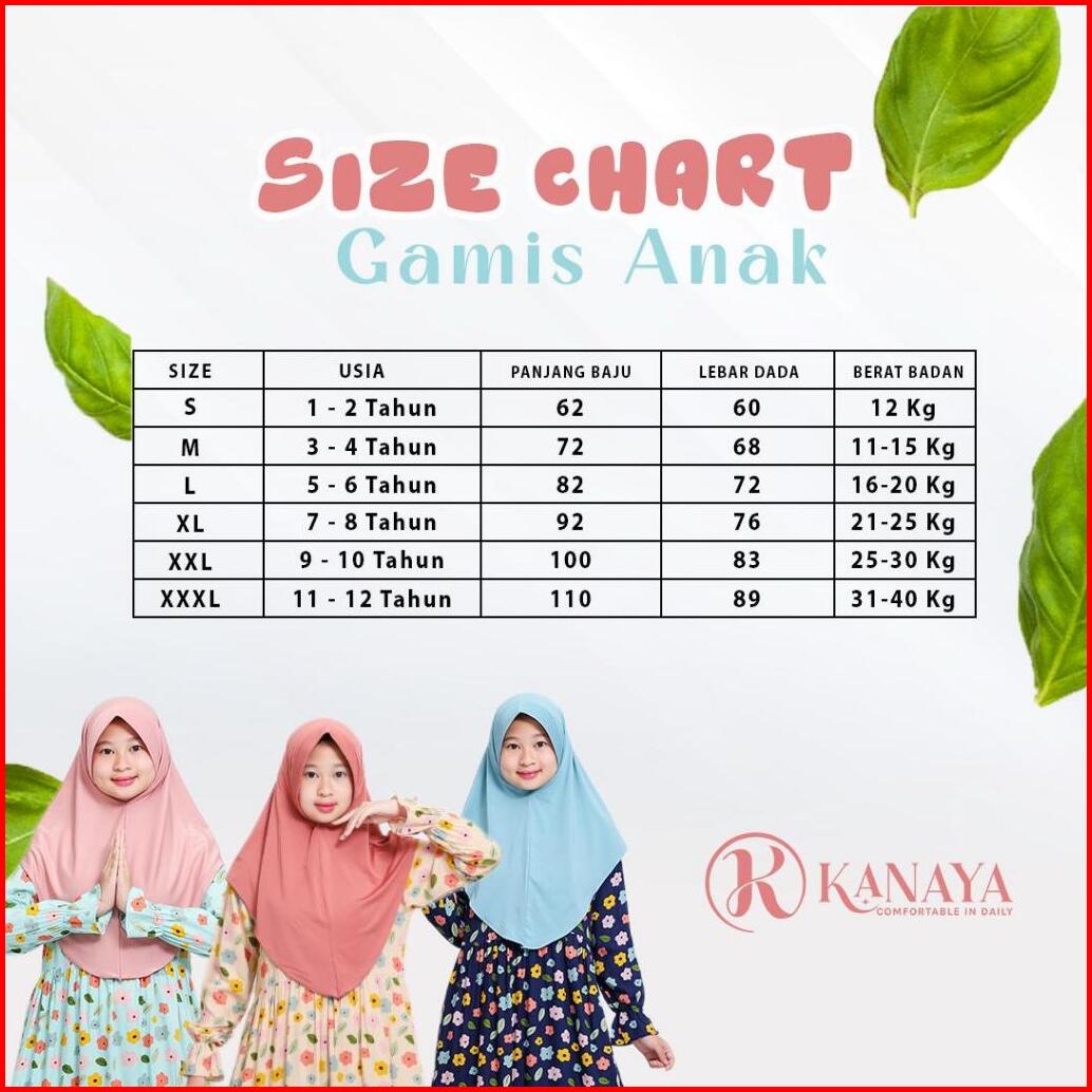Gamis Anak Perempuan 3 -12 Tahun Bahan Rayon Viscose Premium By Kanaya