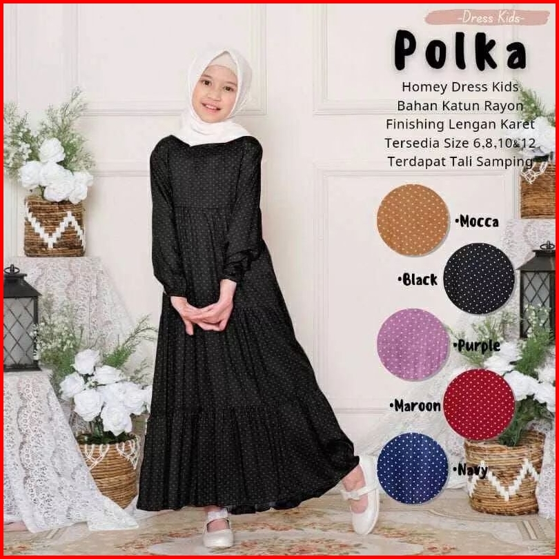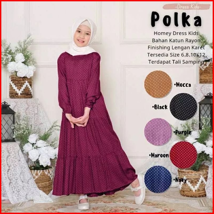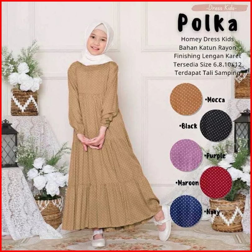 Gamis Anak Polkadot Usia 8 - 13 Th Syar I Bahan Rayon Premium