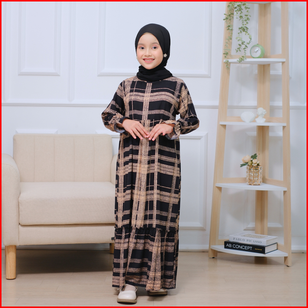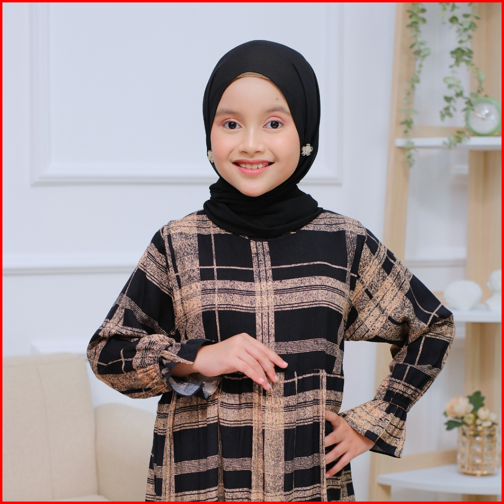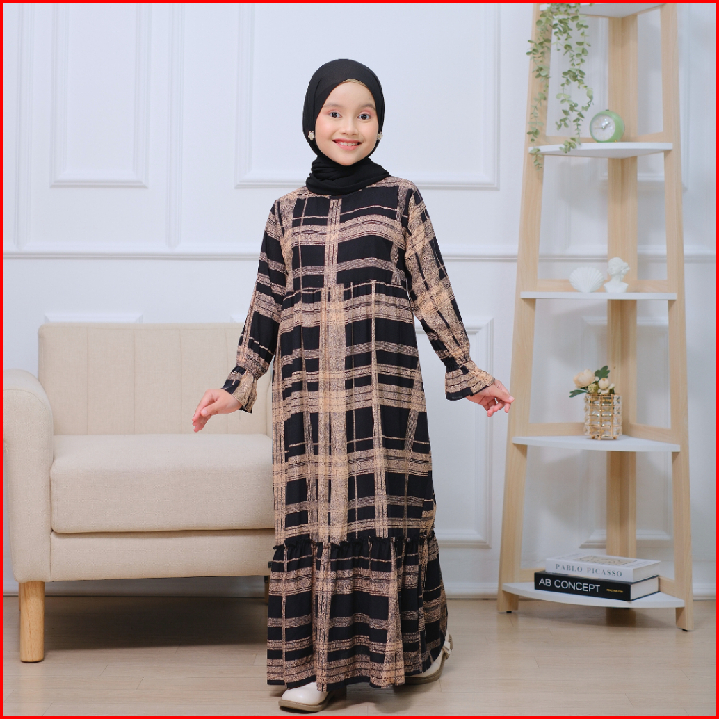 Tatsqif Baju Gamis Anak Syari Katun Rayon Motif Salur Burbena Good Quality 3 - 12 Tahun