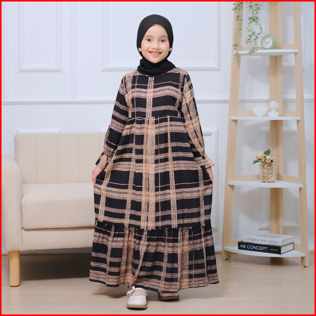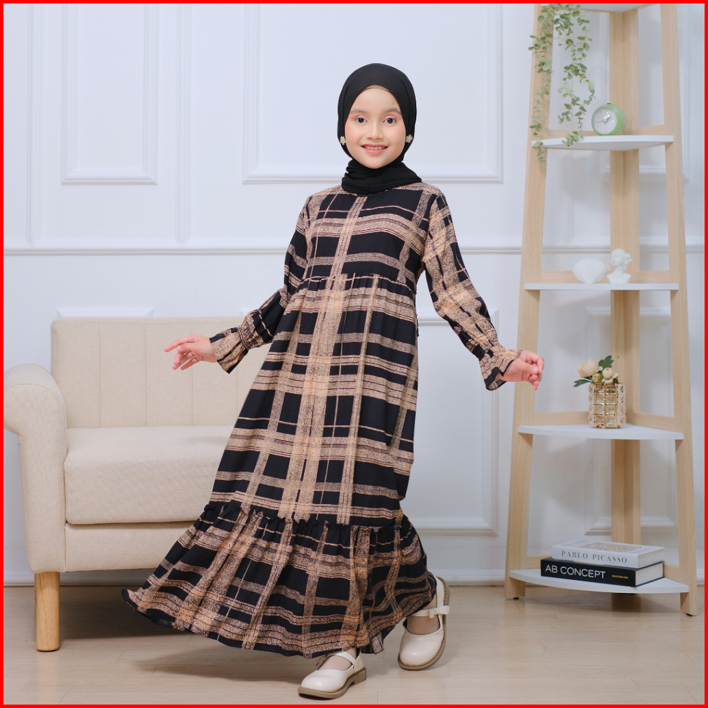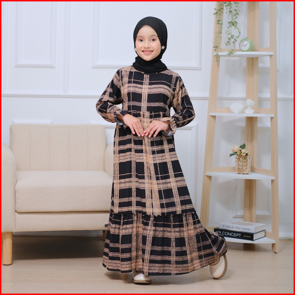 Tatsqif Baju Gamis Anak Syari Katun Rayon Motif Salur Burbena Good Quality 3 - 12 Tahun