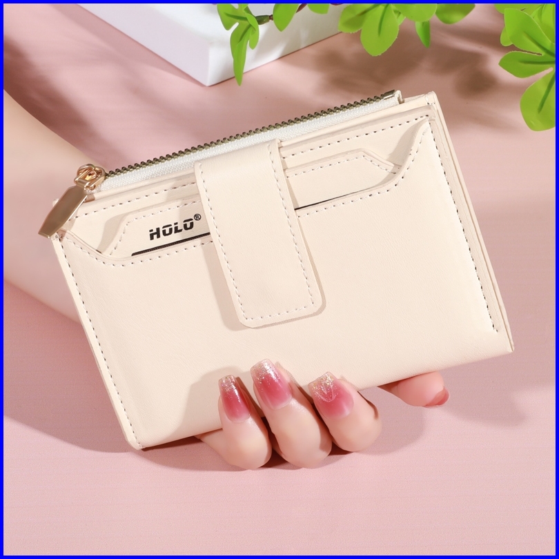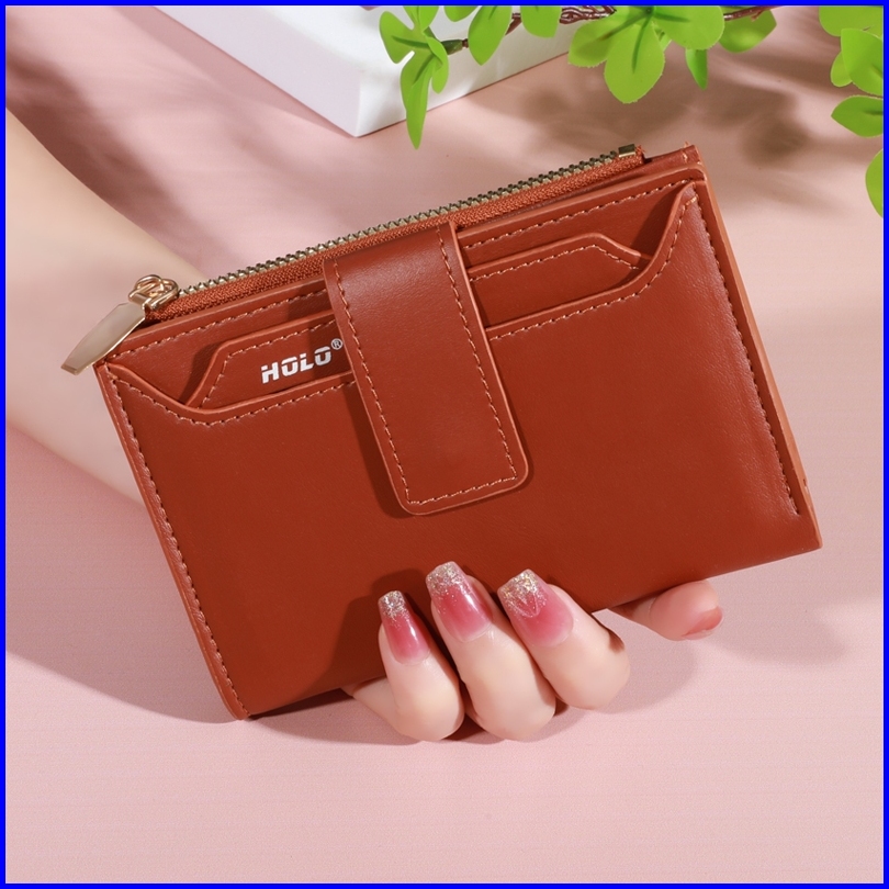 Holo Dompet Lipat Wanita Kecil Elegan Dompet Kartu Kulit Uang Kapasitas Besar Dengan Berbilang Warna