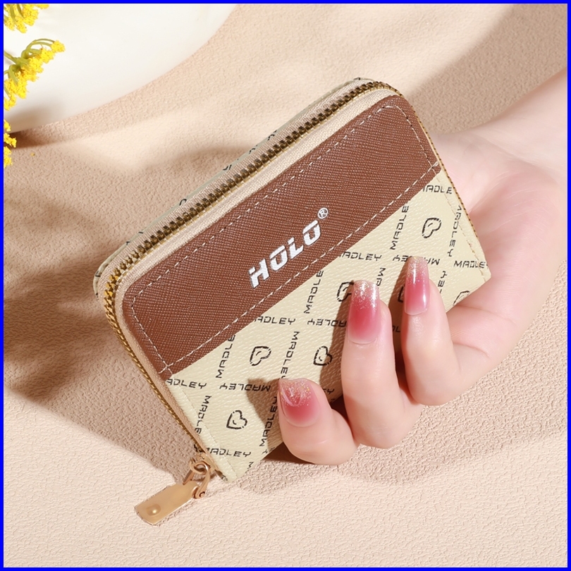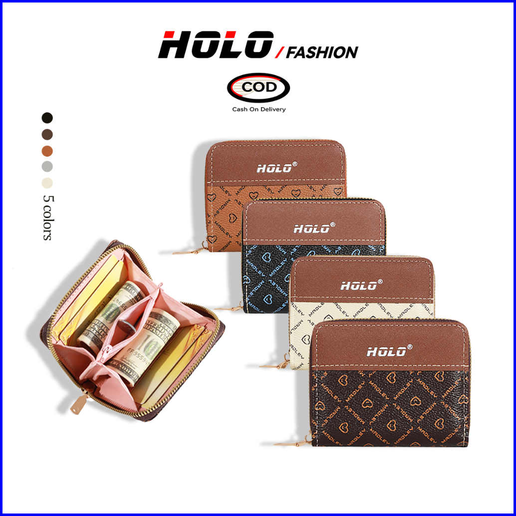 Holo Dompet Koin Mini Card Holder Dompet Lipat Wanita Vintage Simple Dompet Kartu Dan Uang Hitam
