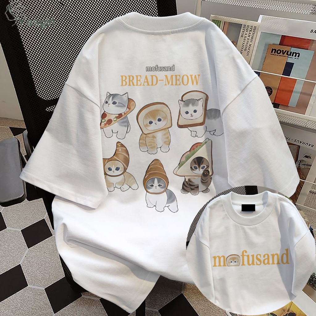 [Mall] Yesgirl Korea style “BREAD-MEOW” print kaos kasual longgar| Kaos Oversize Wanita | Fashion korean style baju kaos oversi