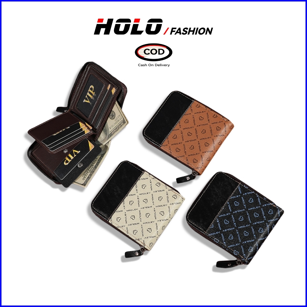 Holo Dompet Pria Kulit Lipat Persegi Fashion Premium Multifungsi Dompet Wanita Hitam Coklat