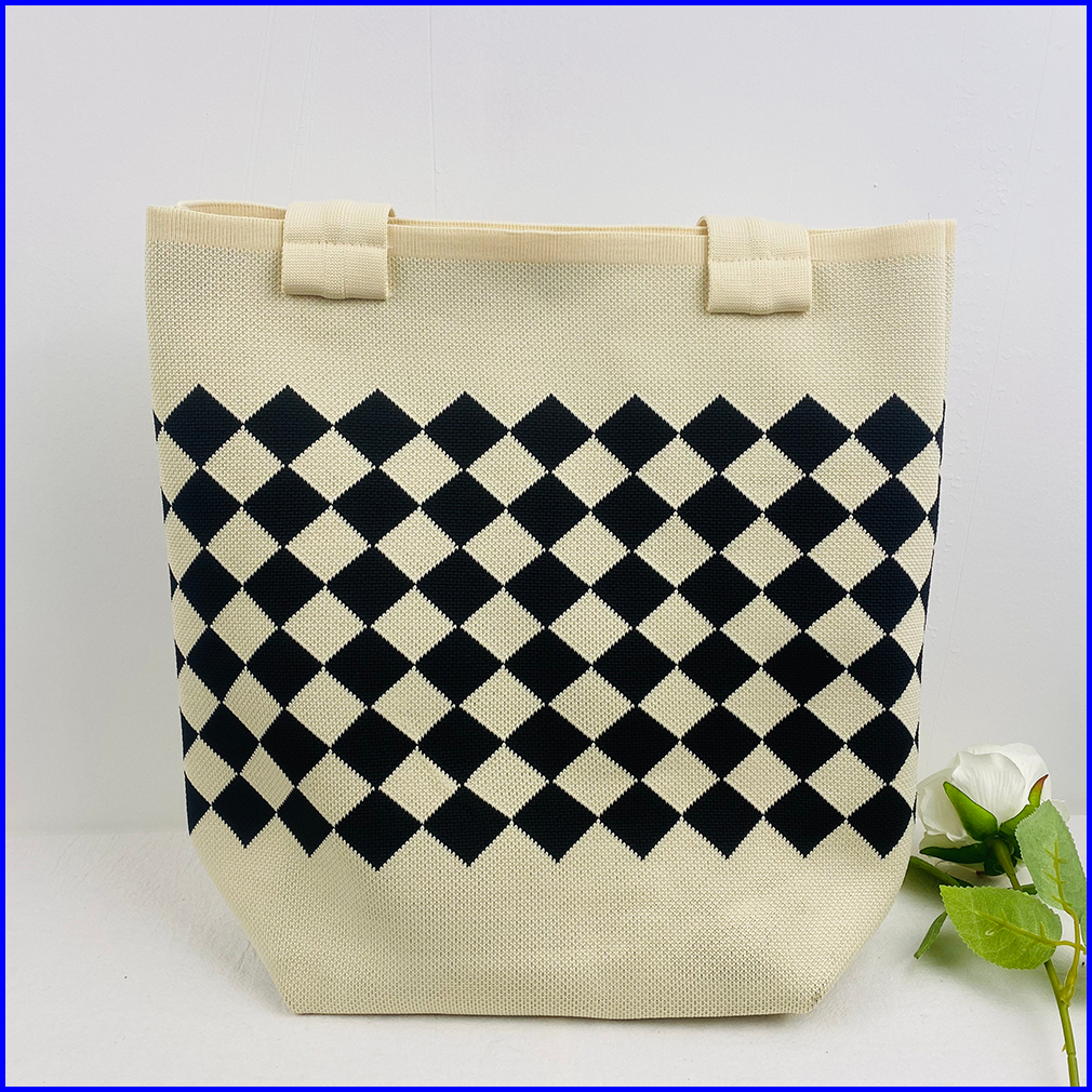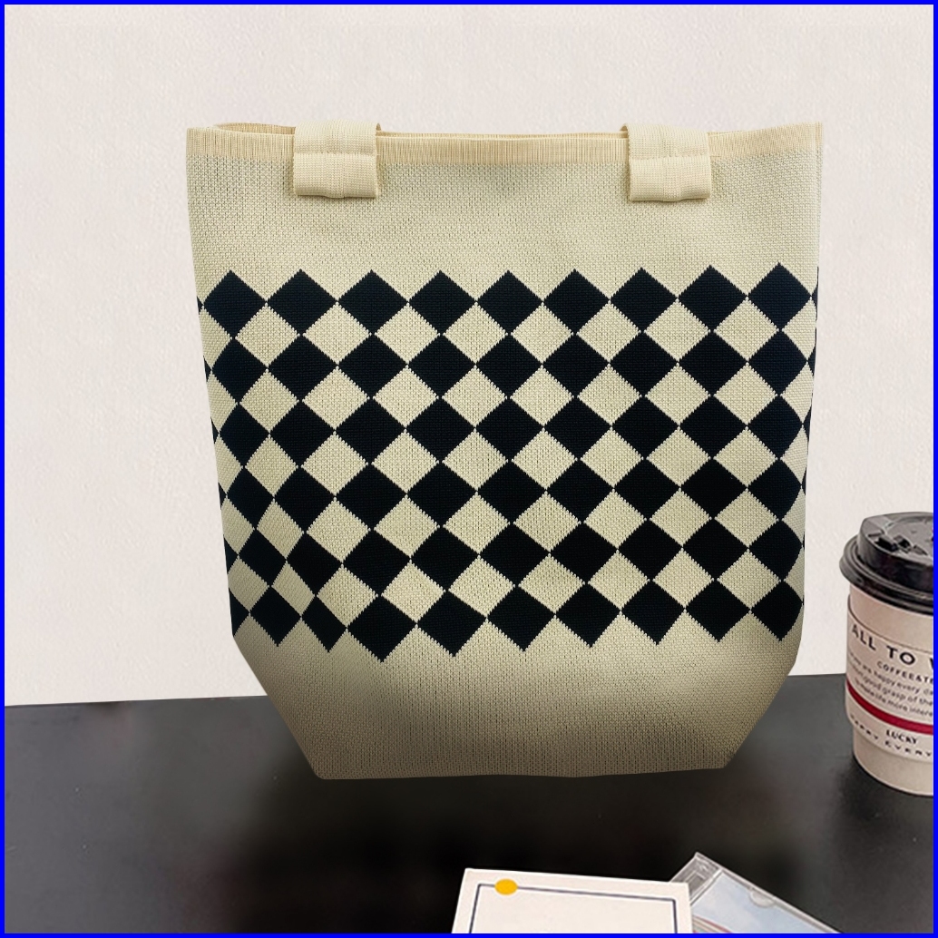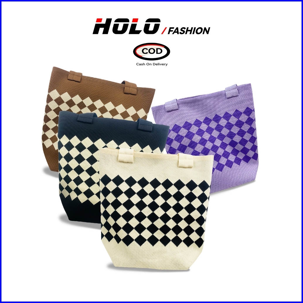 Holo Tas Rajut Korean Tote Bag Wanita Handmade Import Terbaru Lembut Kapasitas Besar Plaid Pattern