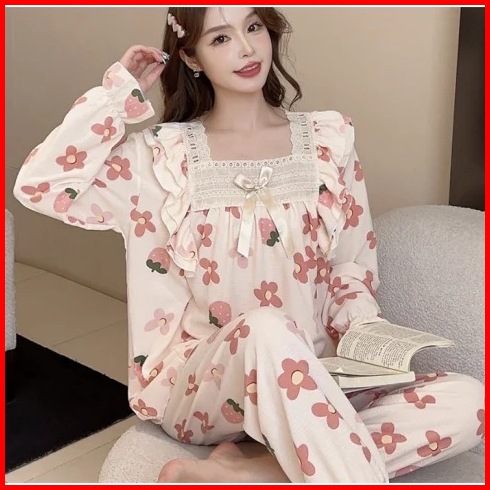 Hannie Piyama Wanita Baju Tidur Lengan Penjang Celana Panjang Wanita Sleepwear Pakaian Tidur Remaja Anak Tanggung Anak G