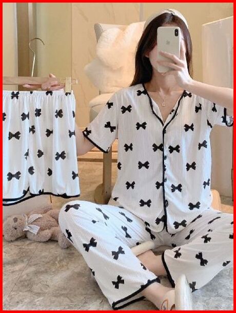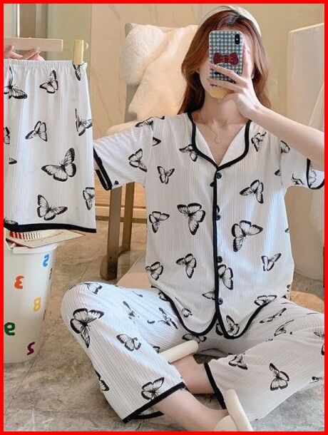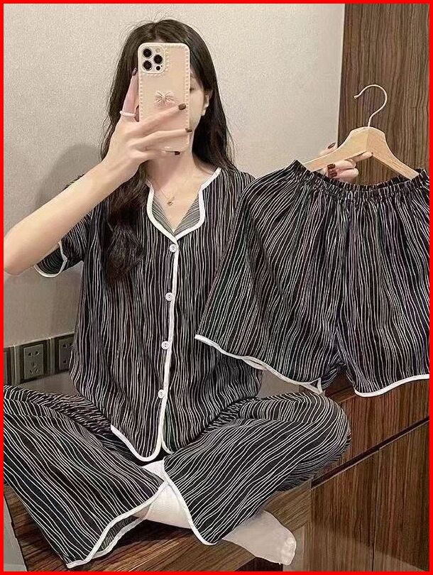 Selina Piyama - Baju Tidur Wanita Set 3 In 1 Bahan Polyester Adem Enak Di Pakai