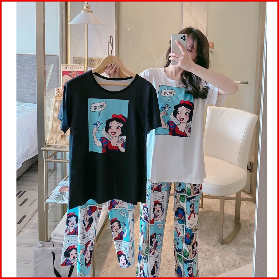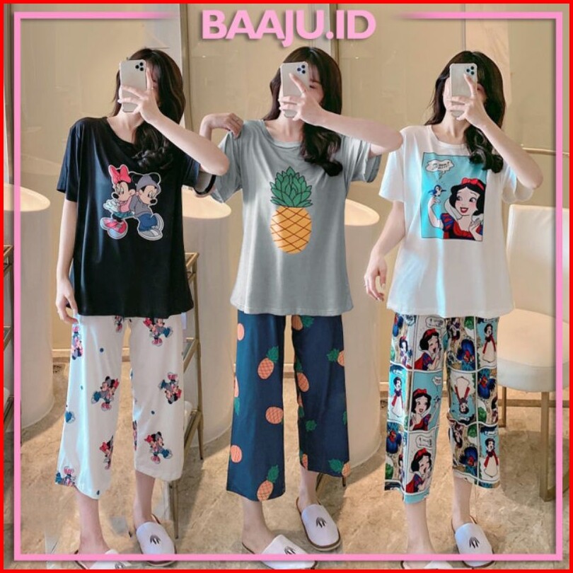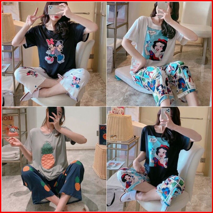 Piyama Import Motif Kartun Baju Tidur Wanita Lengan Pendek Celana Panjang 7 8 Kr1006