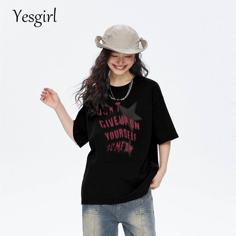 [Mall] Yesgirl Korea style Star letters Fashion print kaos kasual longgar| Kaos Oversize Wanita | Fashion korean style baju kao