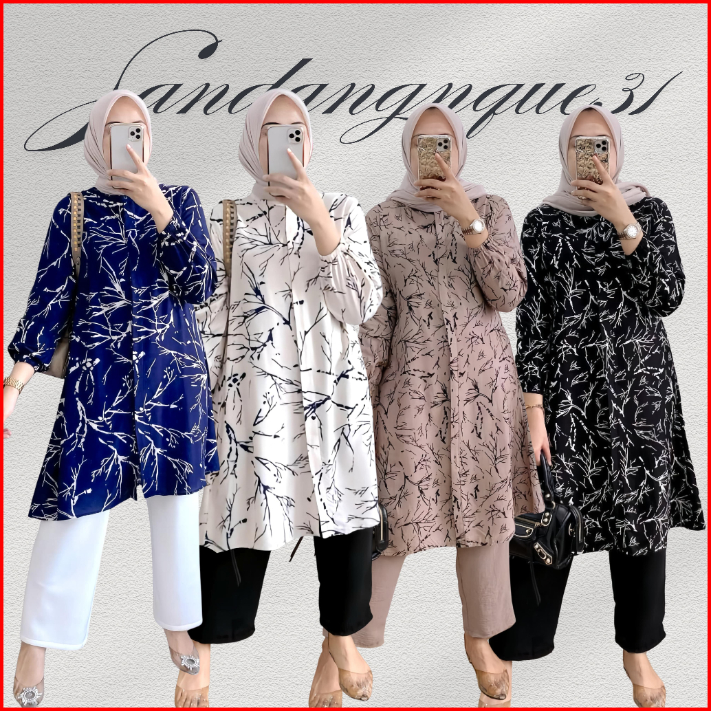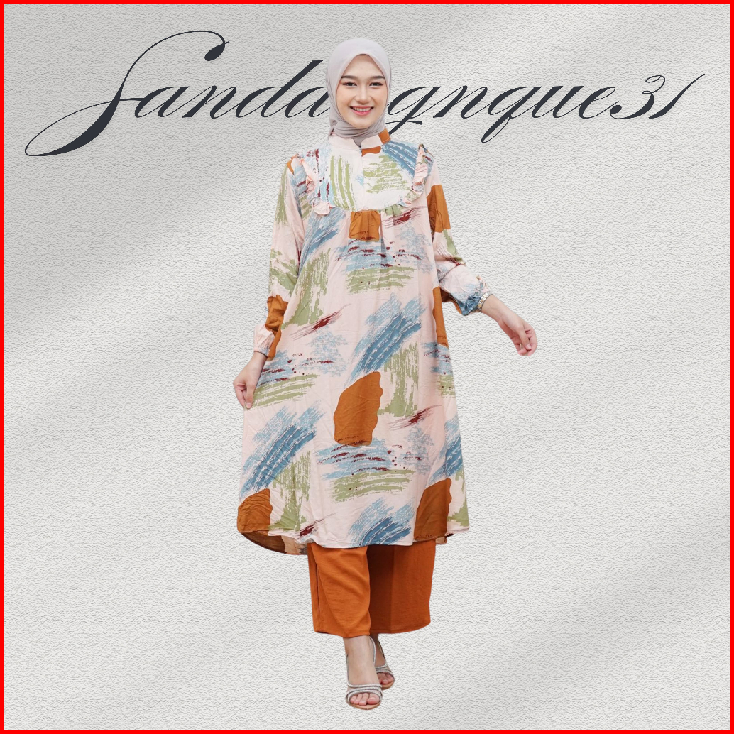 Oneset Wanita Terbaru Motif Kekinian Setelan Wanita Long Tunik Mix Kringkel Outfit Motif Kekinian