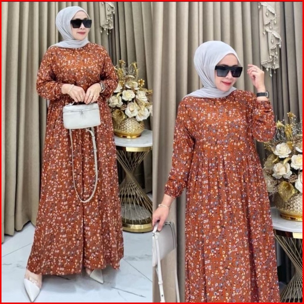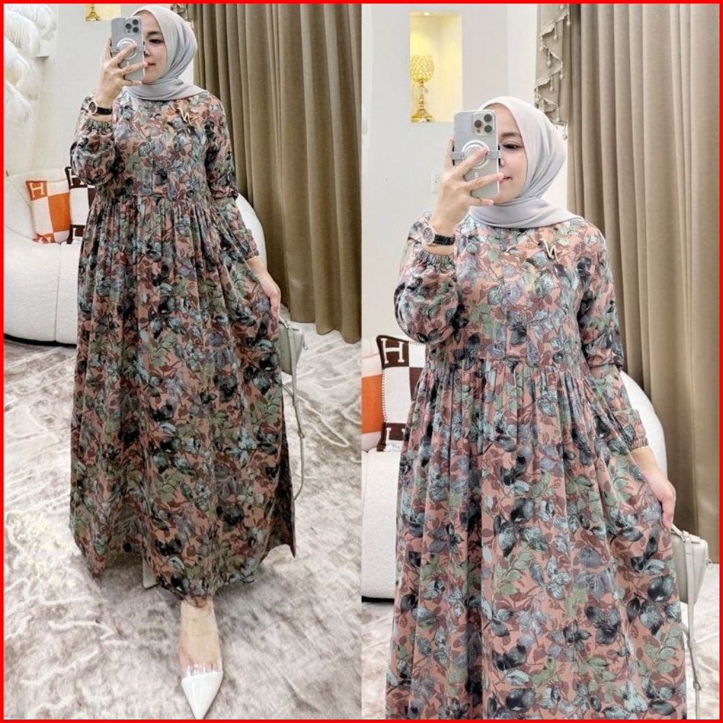 Midi Dress Wanita Rayon Bahan Rayon Premium Terlaris Ld 110 Pb 125 Katun Flowy Dress Busui Friendly New Jumbo