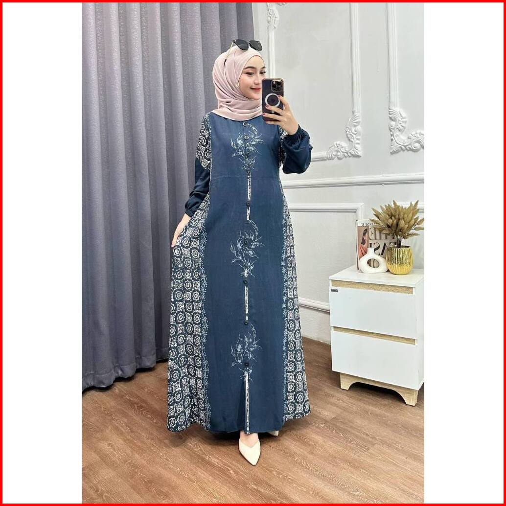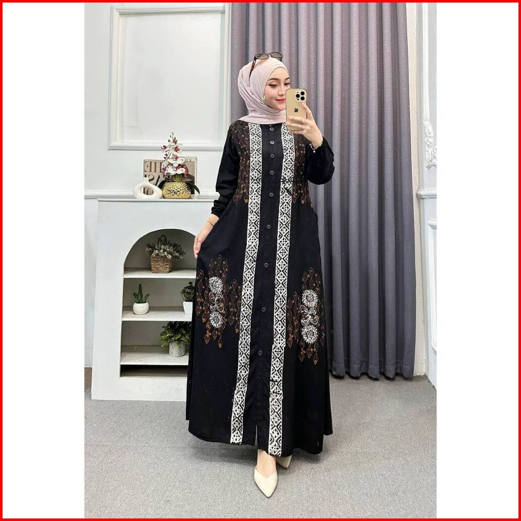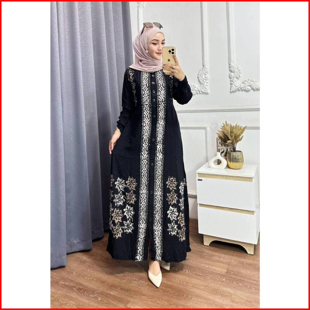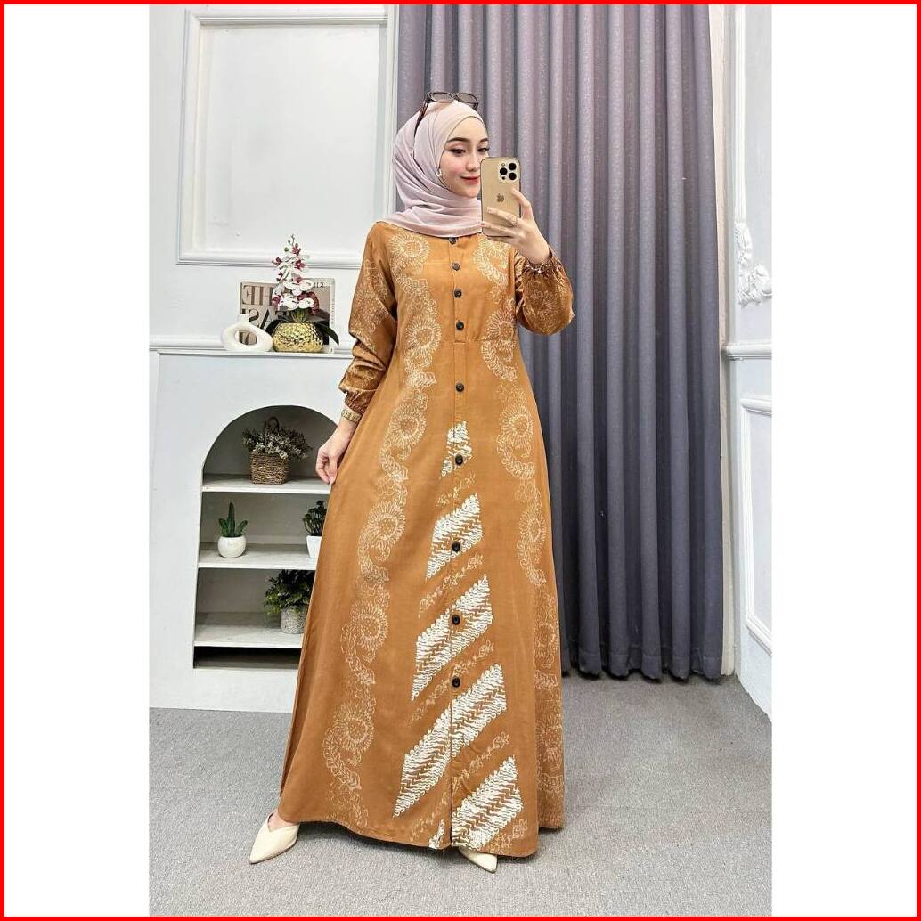 Adam Fasshion - Gamis Twill Rayon Premium Model Kancing Terbaru Jumbo Syari Kekinian Batik Cap