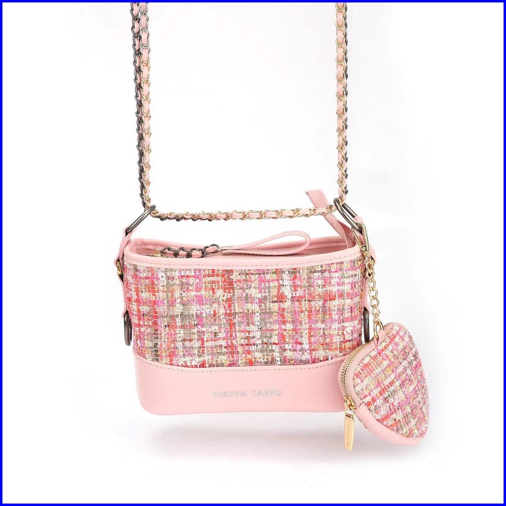 Kimura Carnu -tas Kulit Rajut Wanita Tas Bahu Selempang 2in1 Pink 6106