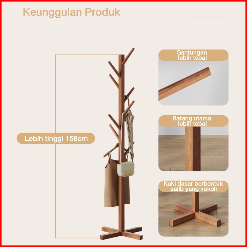 Stand Hanger Gantungan Kayu Rak Gantungan Bajugantungan Tiang Berdiri Gantungan Topi Tas Stand Hanger Serbaguna