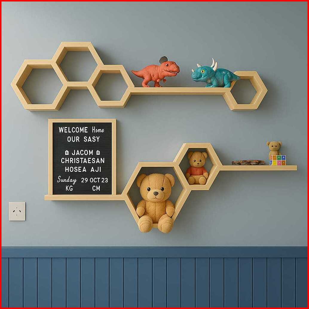 Satu Set Rak Tempel Hexagonal Hiasan Dinding Estetik Hexagon Rak Dinding Tempel Pajangan Ruang Tamu Kamar Tidur Aestheti