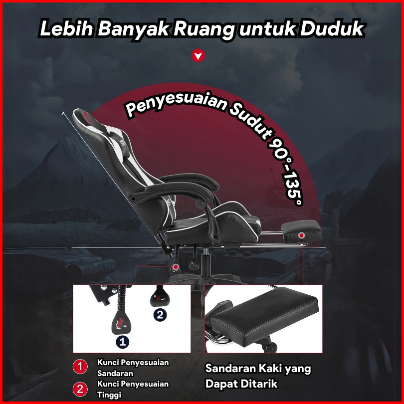 Kursi Gaming Gamers Chair Kursi Kantor Kursi Main Game Kursi Balap Gaming Dengan Sandaran Kaki Y47a1