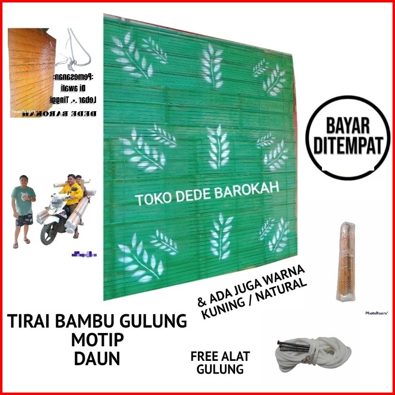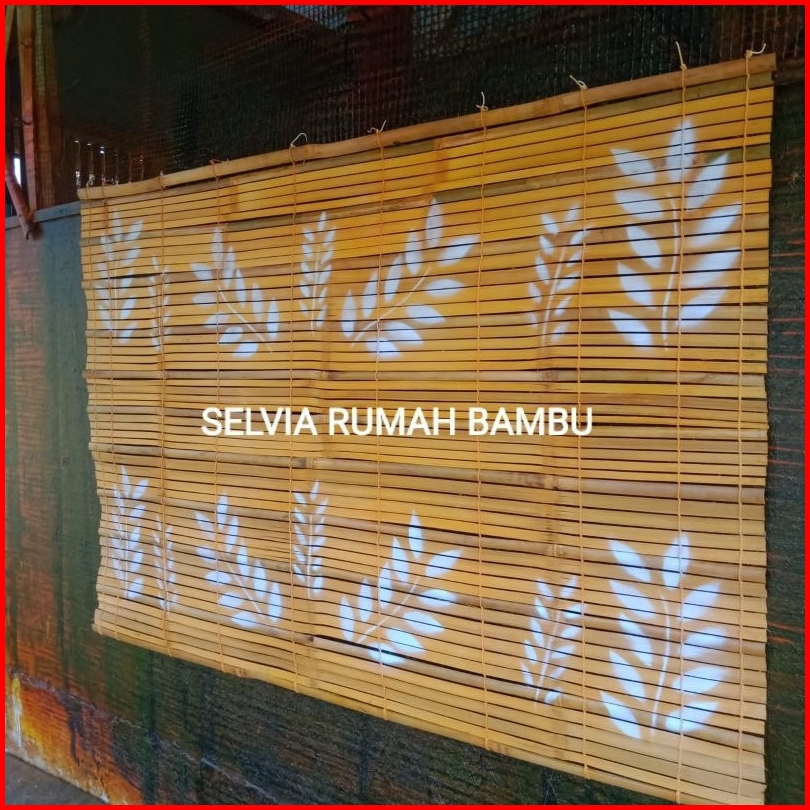 Tirai Bambu Motif Krey Gulung Outdoor Ukuran 2x2m Plus Tali Ring Set