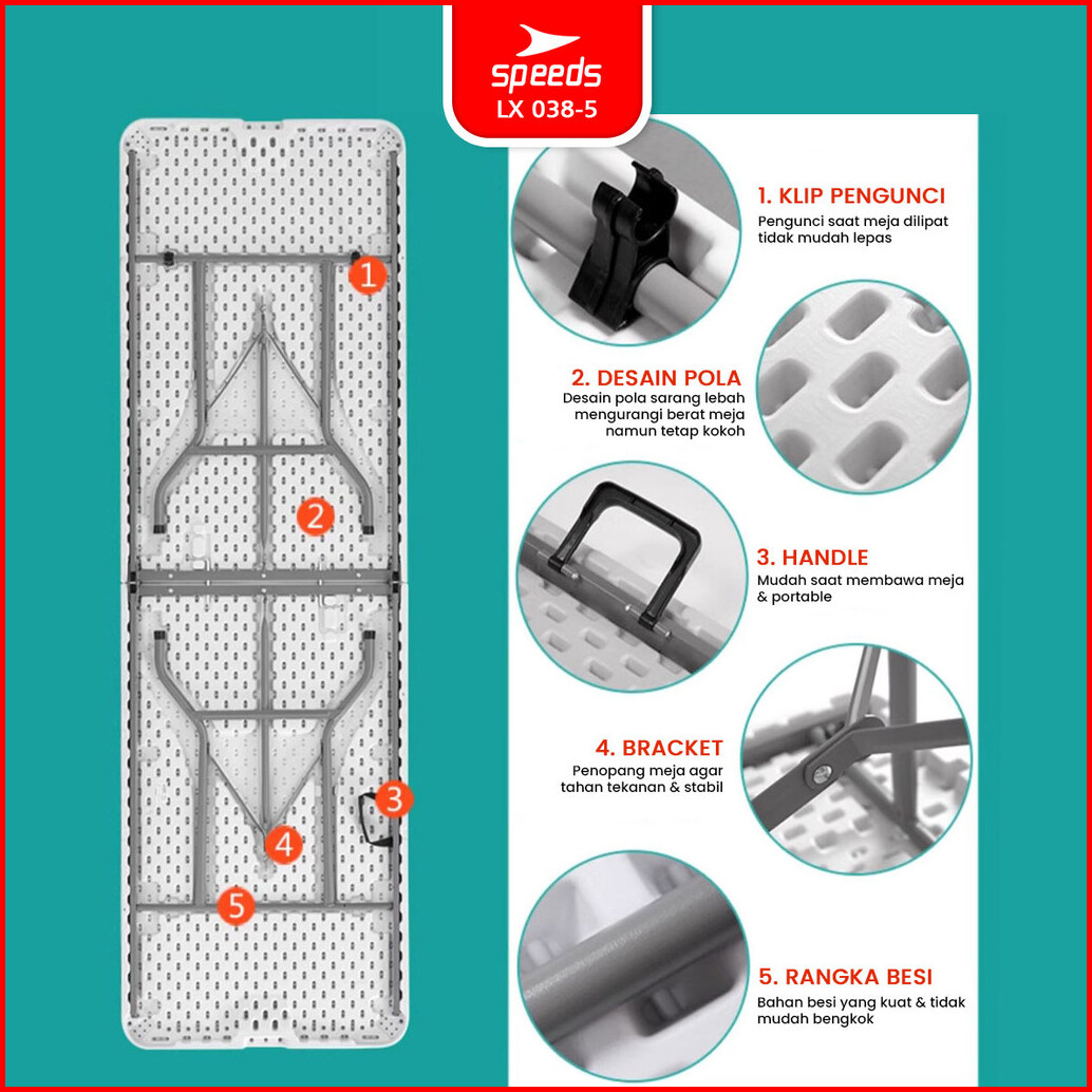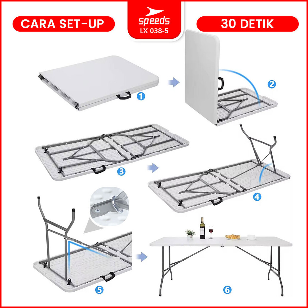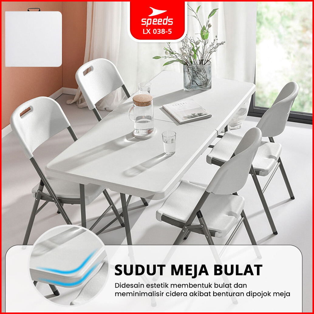 Speeds Meja Lipat Folding Table 244x75x74cm Hdpe Indoor Outdoor Piknik Pameran Serbaguna Besar Meja Makan 038-5