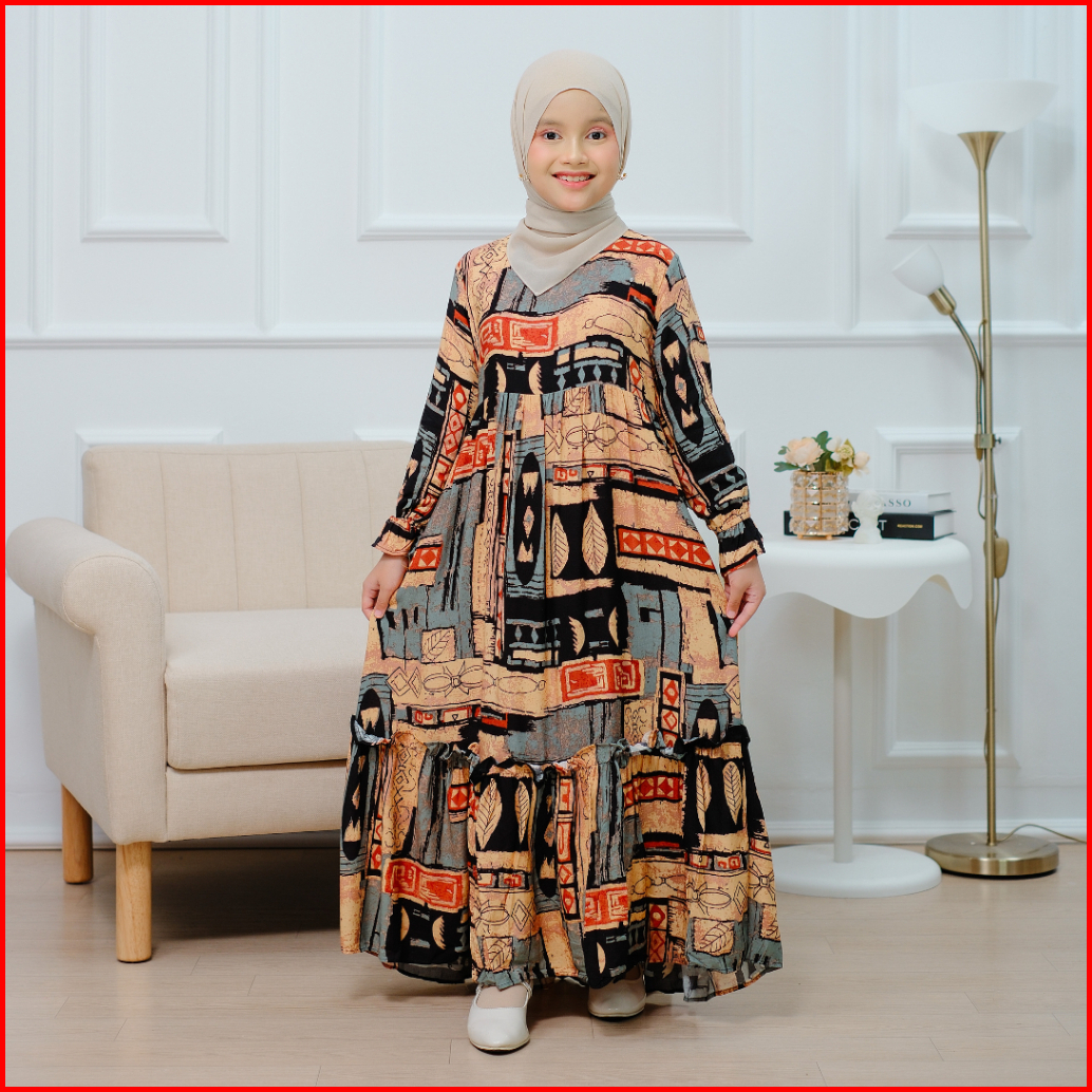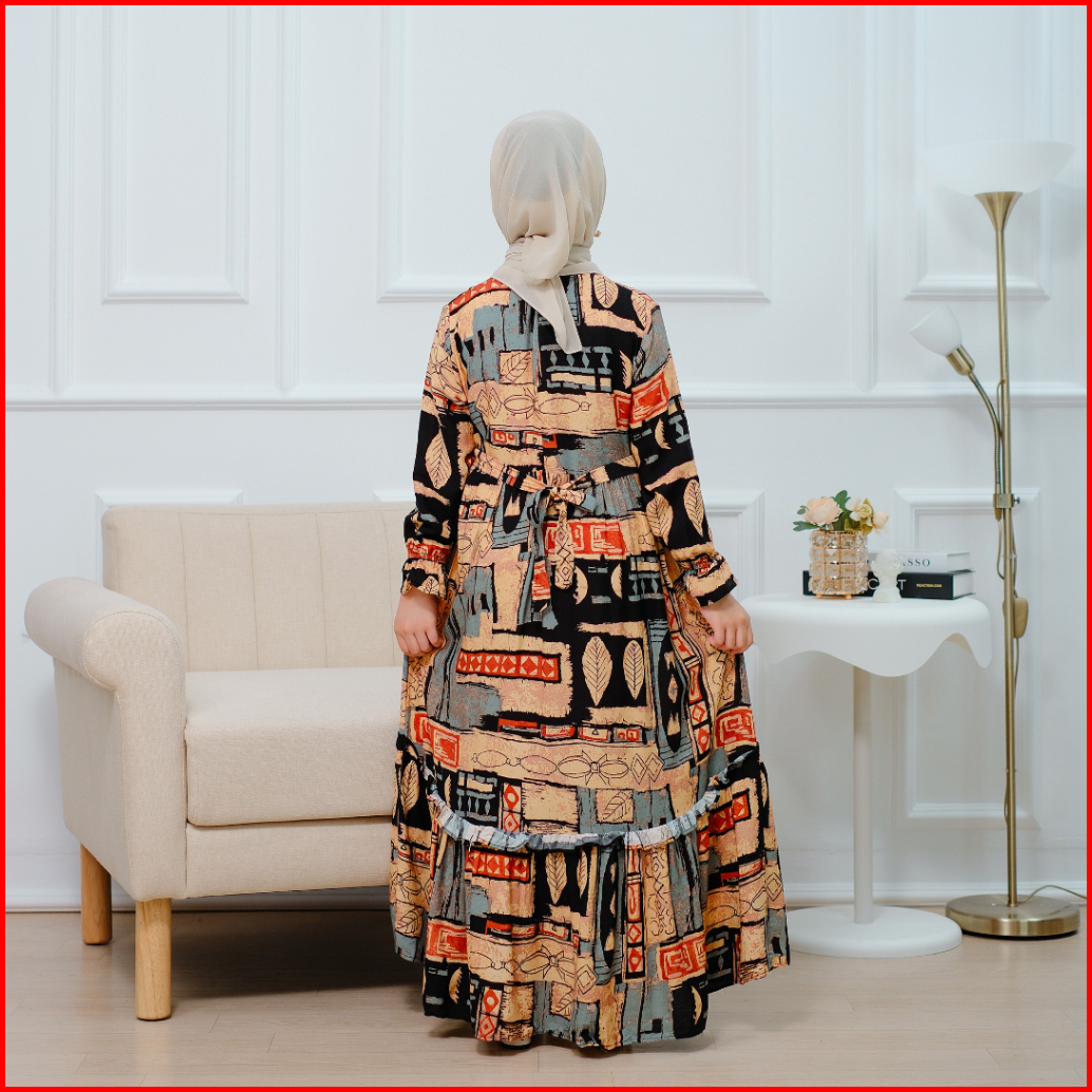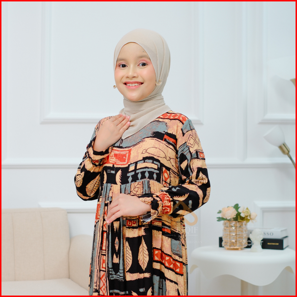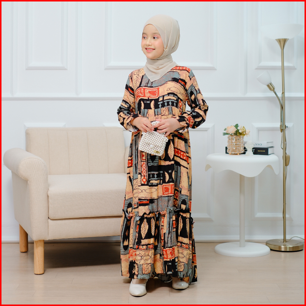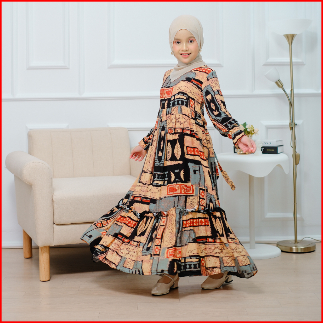 Tatsqif Baju Gamis Anak Syari Katun Rayon Motif Salur Abspira Good Quality 3 - 12 Tahun