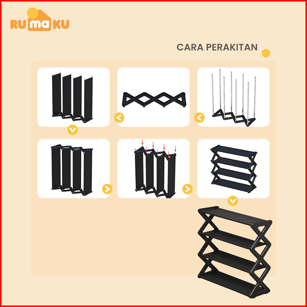 Rak Sepatu Portable 4 Susun Minimalis Stainless Steel Tempat Sepatu Dan Sandal Serbaguna