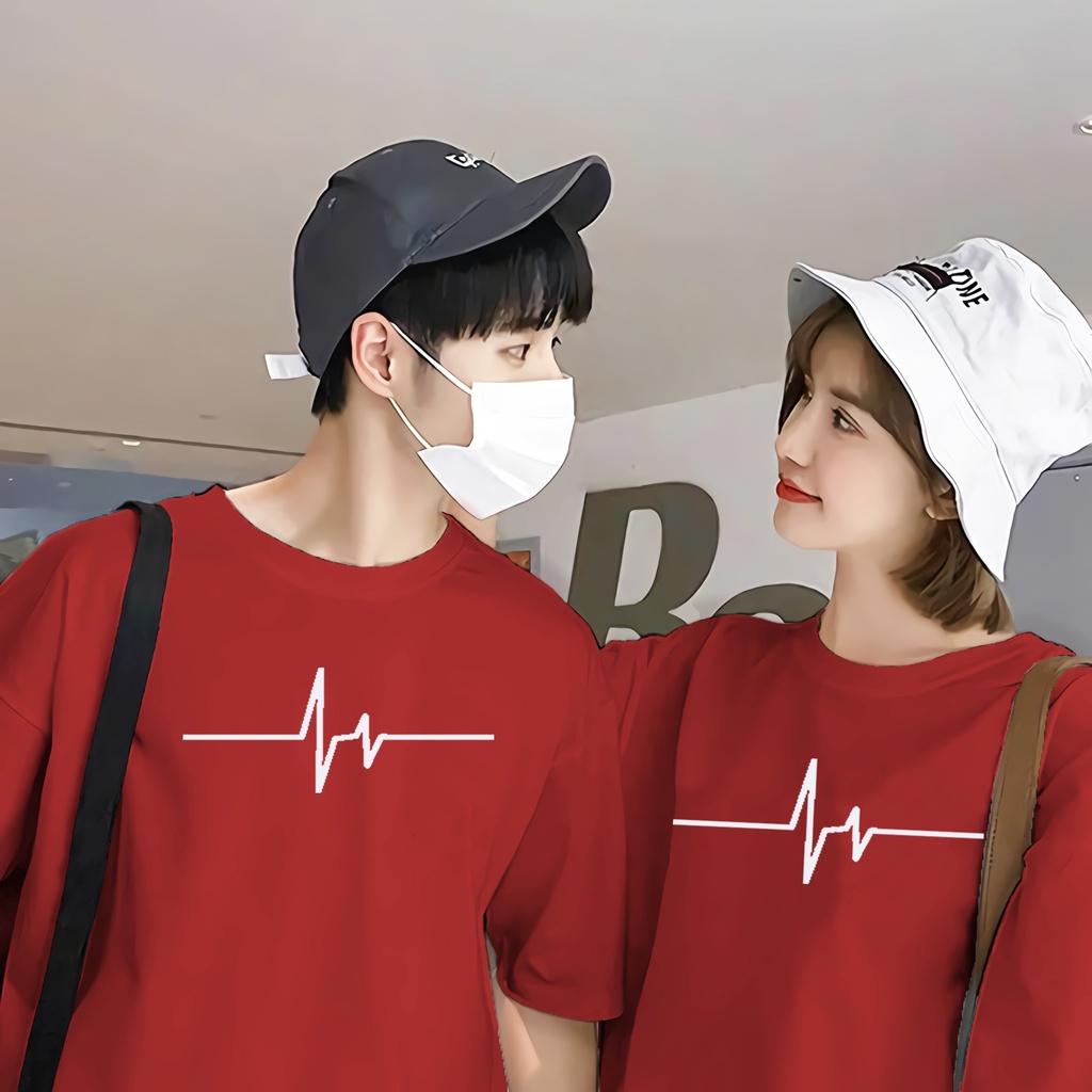 [Mall] Baju Kaos Distro Couple Detak Jantung Cowok Cewek Katun Combed/Baju Kaos Pasangan Pria Wanita Distro Dewasa Jumbo Oblong