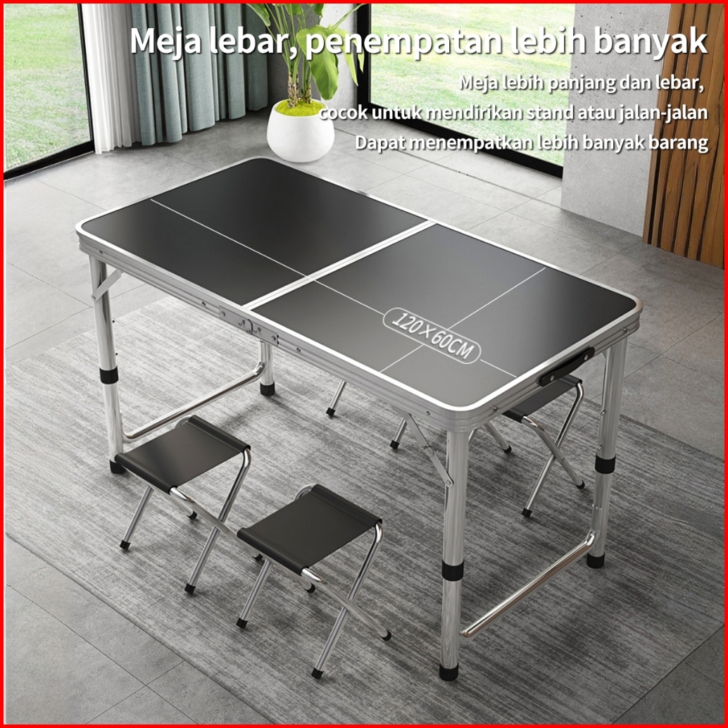 Meja Lipat Meja Koper Portabel Aluminium 120x60 Cm Meja Camping Outdoor Meja Jualan Serbaguna Kaki Bulat