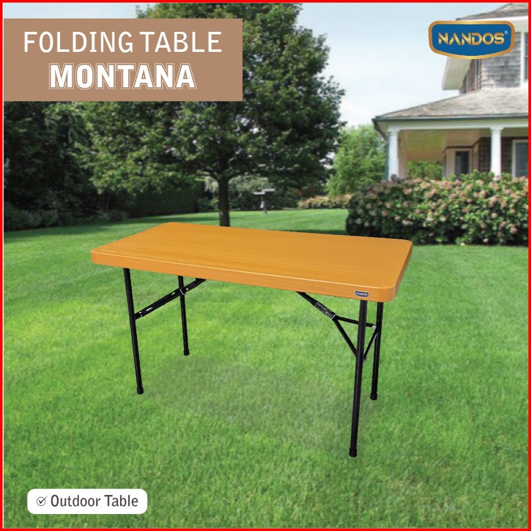 Nandos Meja Lipat Montana Meja Plastik Meja Motif Kayu Meja Pelatihan Serbaguna Kaki Besi