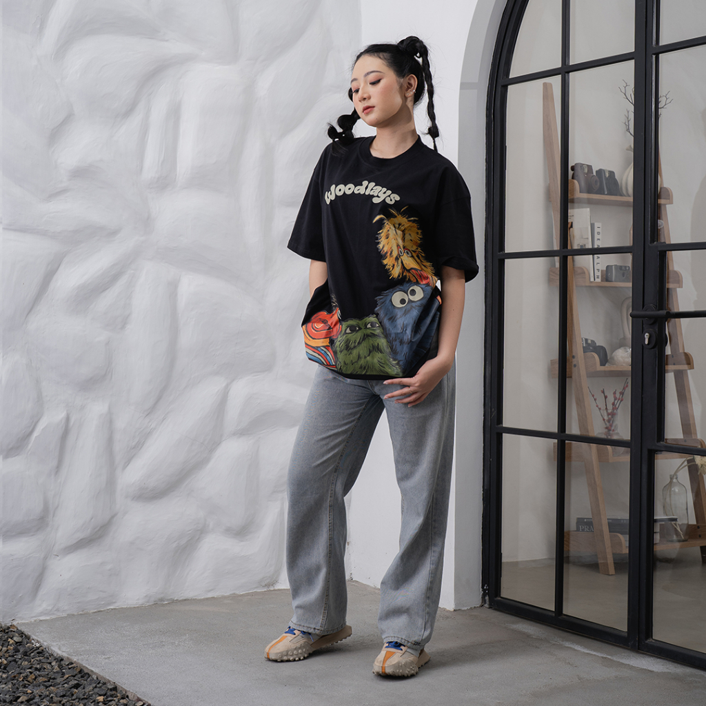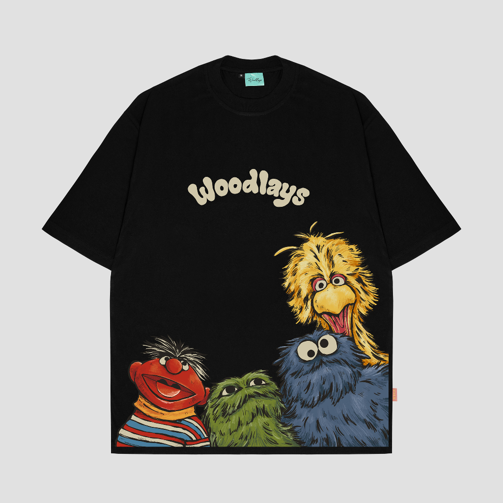 [Mall] Woodlays Kaos T-Shirt Oversize Black Sesame Street