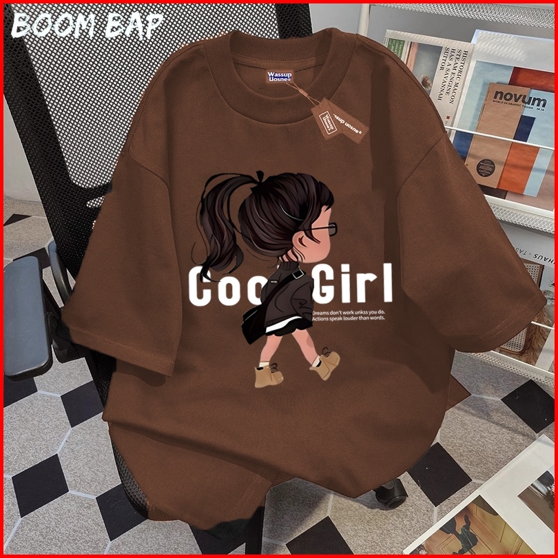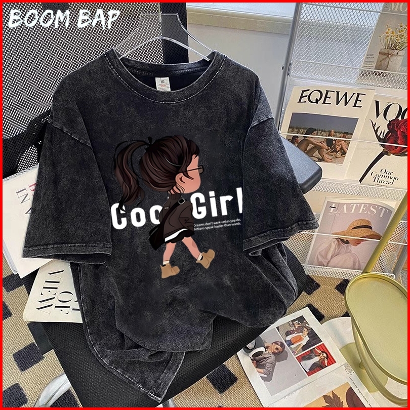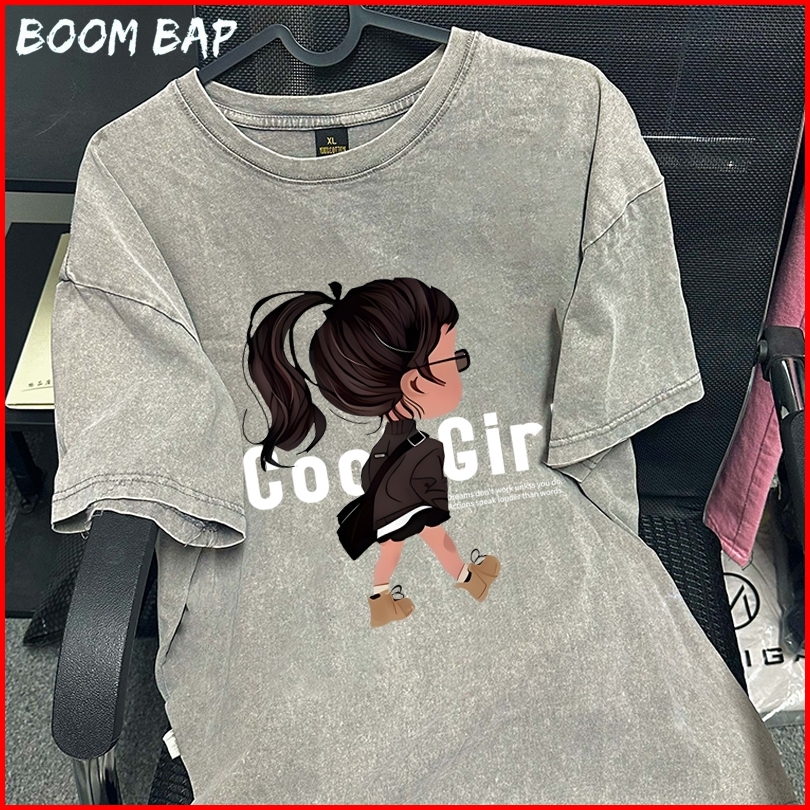 Boombap American Retro Style T-shirt Oversize Cool Girl Print Top Kaos Wanita Khaki Kaos Pria Dan Wanita Street Style 10